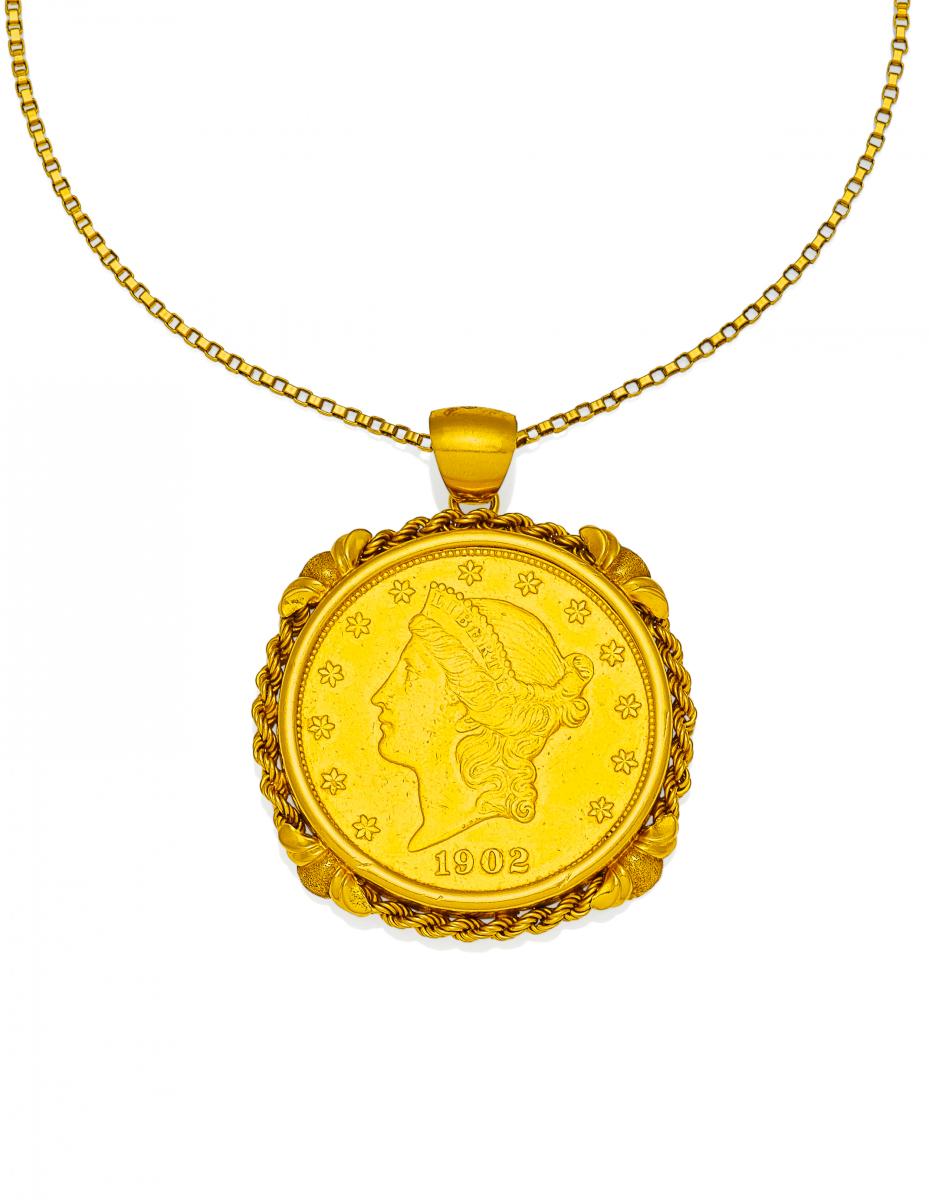 750/- Gelbgold, Gesamtgewicht: 42,0g. D.ca. 5,0 x 4,0cm (inkl. Öse).