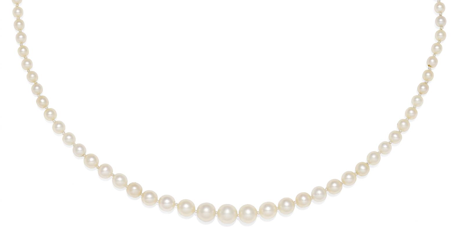 Verschluss: Silber, Gesamtgewicht: 8,2g. L.ca. 45,0cm. 13 Diamanten im Alt- und Rosenschliff zus.ca. 0,1ct, ca. 106 gemischte Zucht- und Naturperlen, rund-unrund, D.ca. 5,9-2,2mm, weiß-creme-irisierendes rosé.