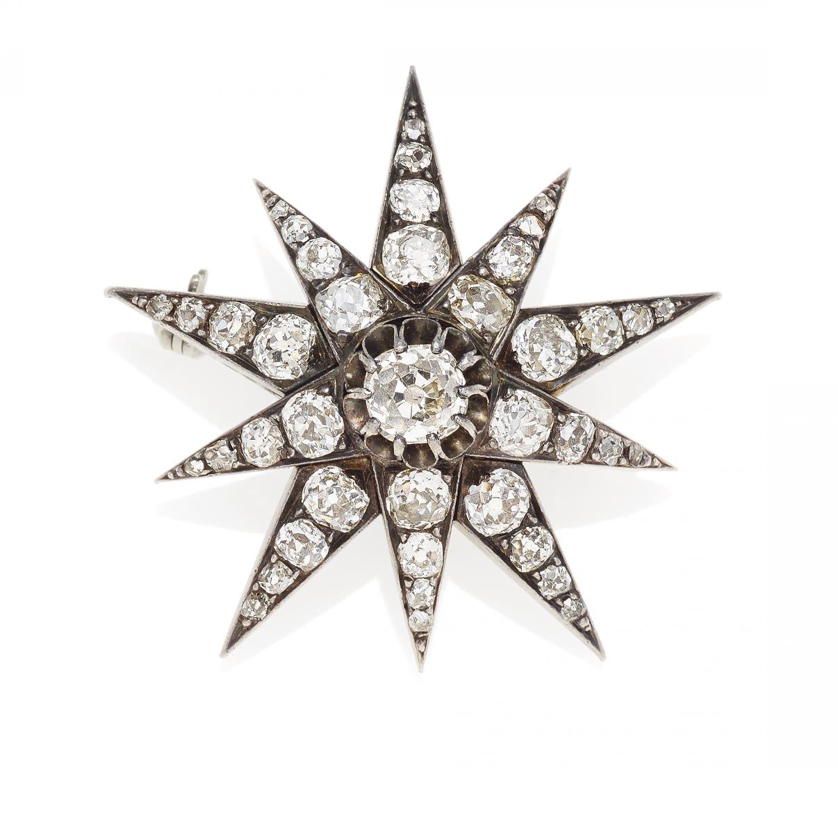 585/- Gelbgold, Silber, Gesamtgewicht: 11,5g. D.ca. 3,6cm. 41 Diamanten im Rosen- und Altschliff zus.ca. 2,7ct I-L/ VS-P1.