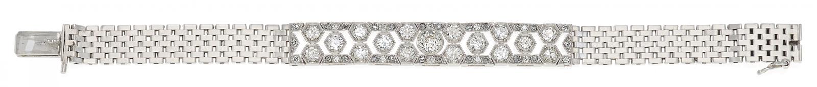 750/- Weißgold, Gesamtgewicht: 19,0g. L x B=ca. 15,5 x 1,0cm. 52 Diamanten im Alt-/ 8/8- und Rosenschliff zus.ca. 0,7ct.