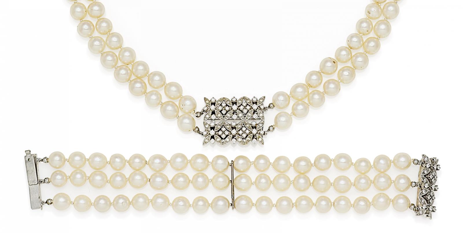 AKOYA-ZUCHTPERL-SET: COLLIER UND ARMBAND.
