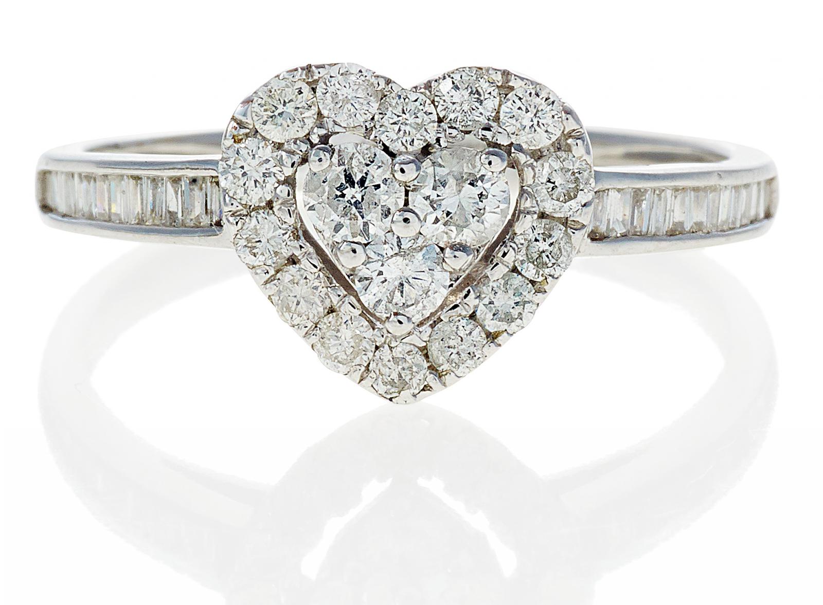 750/- Weißgold, Gesamtgewicht: 2,5g. EU-RM: 55,5. Ca. 45 Diamanten im Baguette- und Brillantschliff zus.ca. 0,6ct H/ SI-P1.