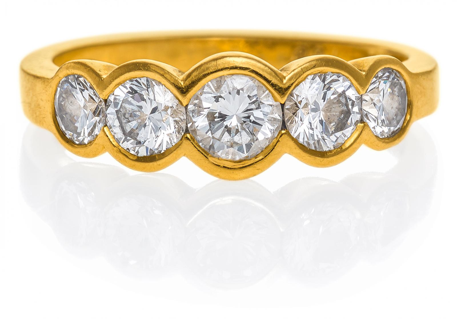 750/- Gelbgold, Gesamtgewicht: 4,5g. EU-RM: 55. 5 Brillanten zus.ca. 1,0ct I-J/ VS2-SI2.