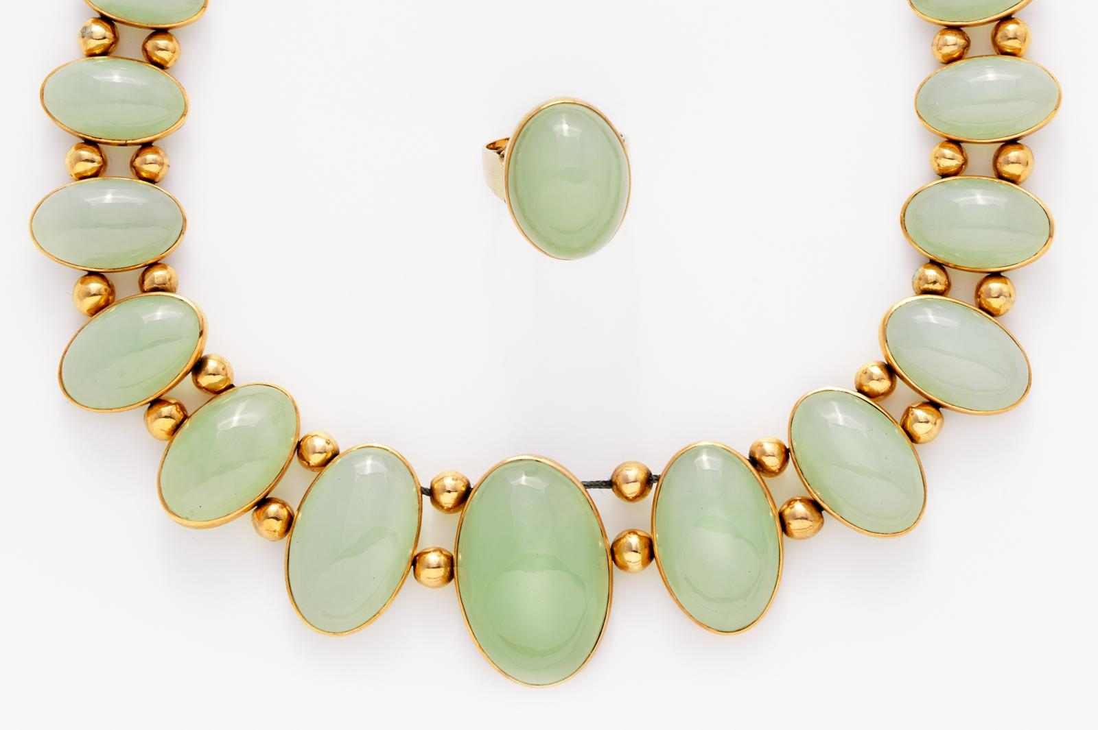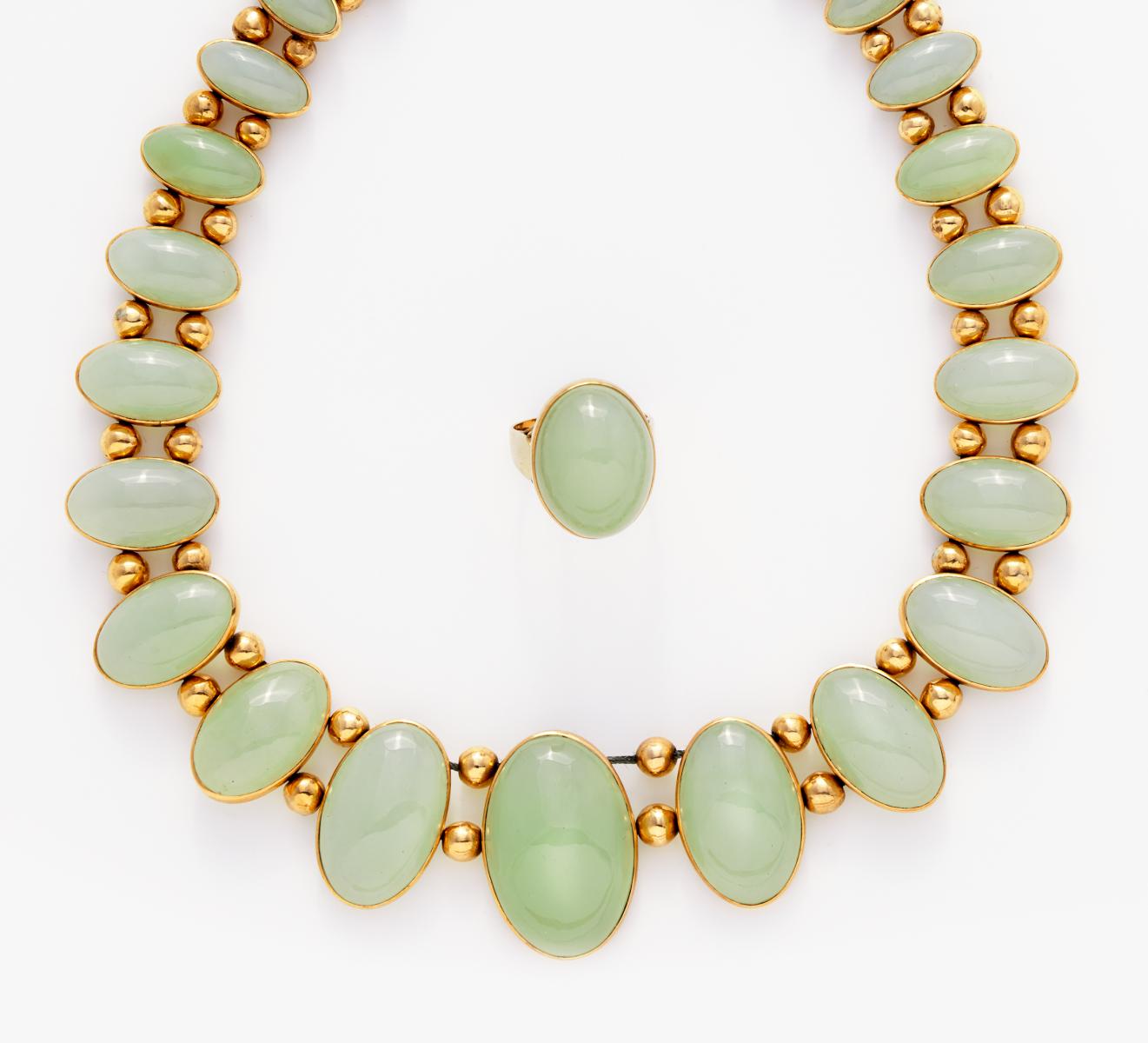 AVENTURIN-SET: COLLIER UND RING.