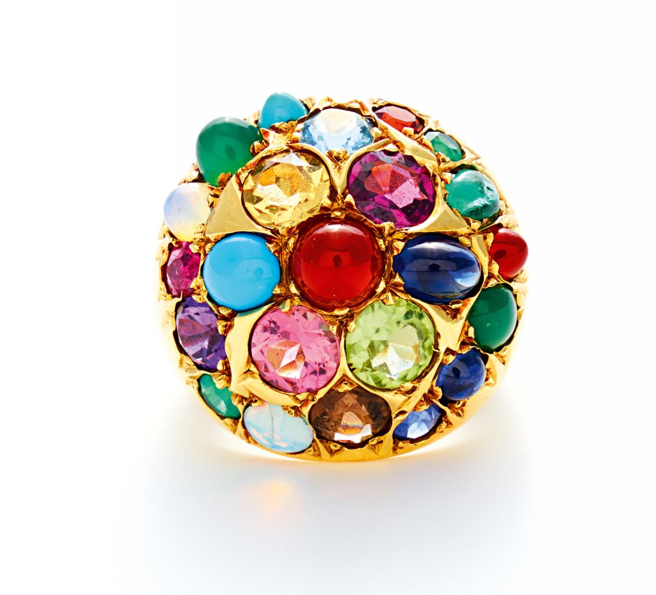 Edelsteine: 12 oval und rund facettierte Farbsteine, u.a. Amethyst, Saphir, Spinell. 11 Farbstein-Cabochons, u.a. Opal, Türkis, Saphir..