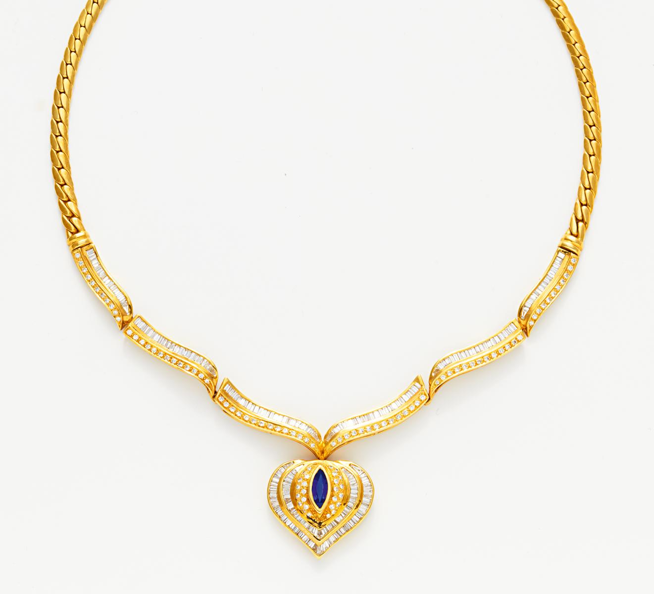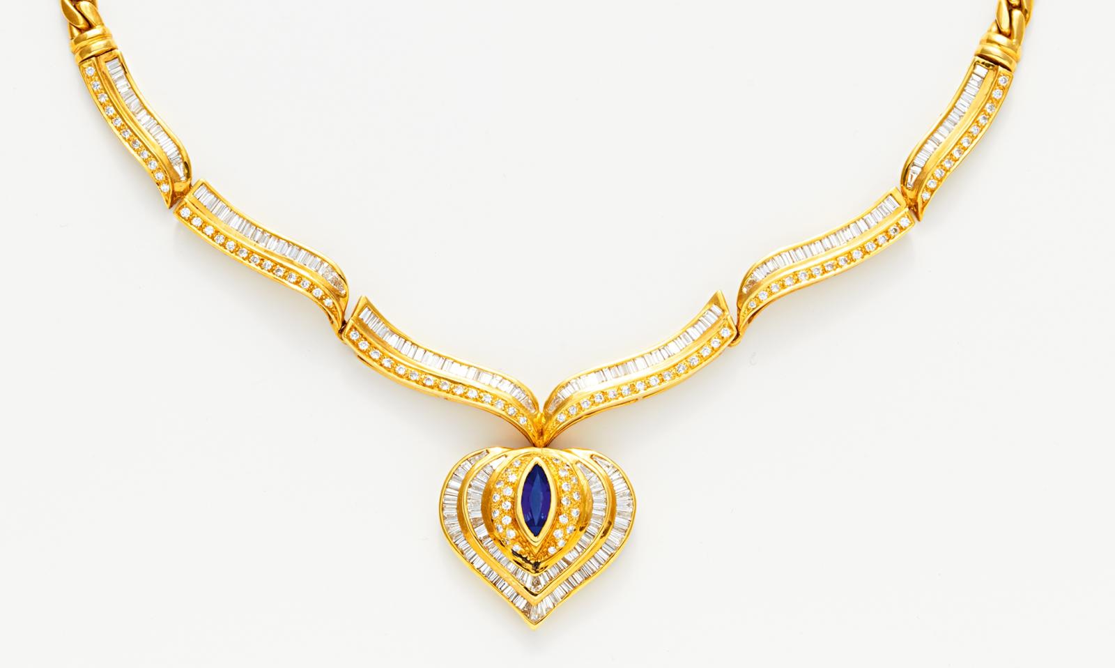 Diamanten: Vielzählige Diamanten im Baguette und Brillantschliff,.
