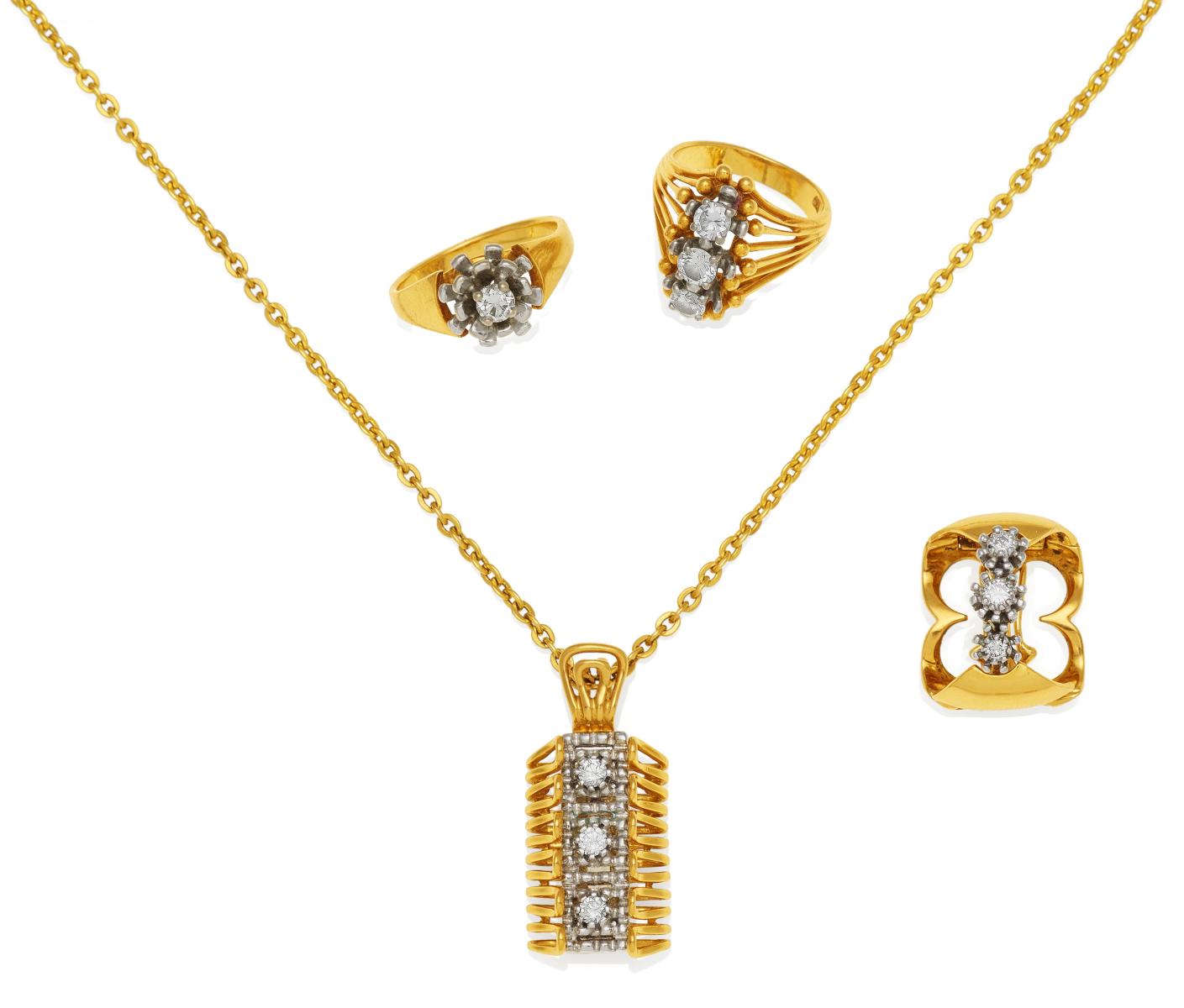 GOLD-KONVOLUT: ANHÄNGERKETTE, ZWEI RINGE, CLIP.