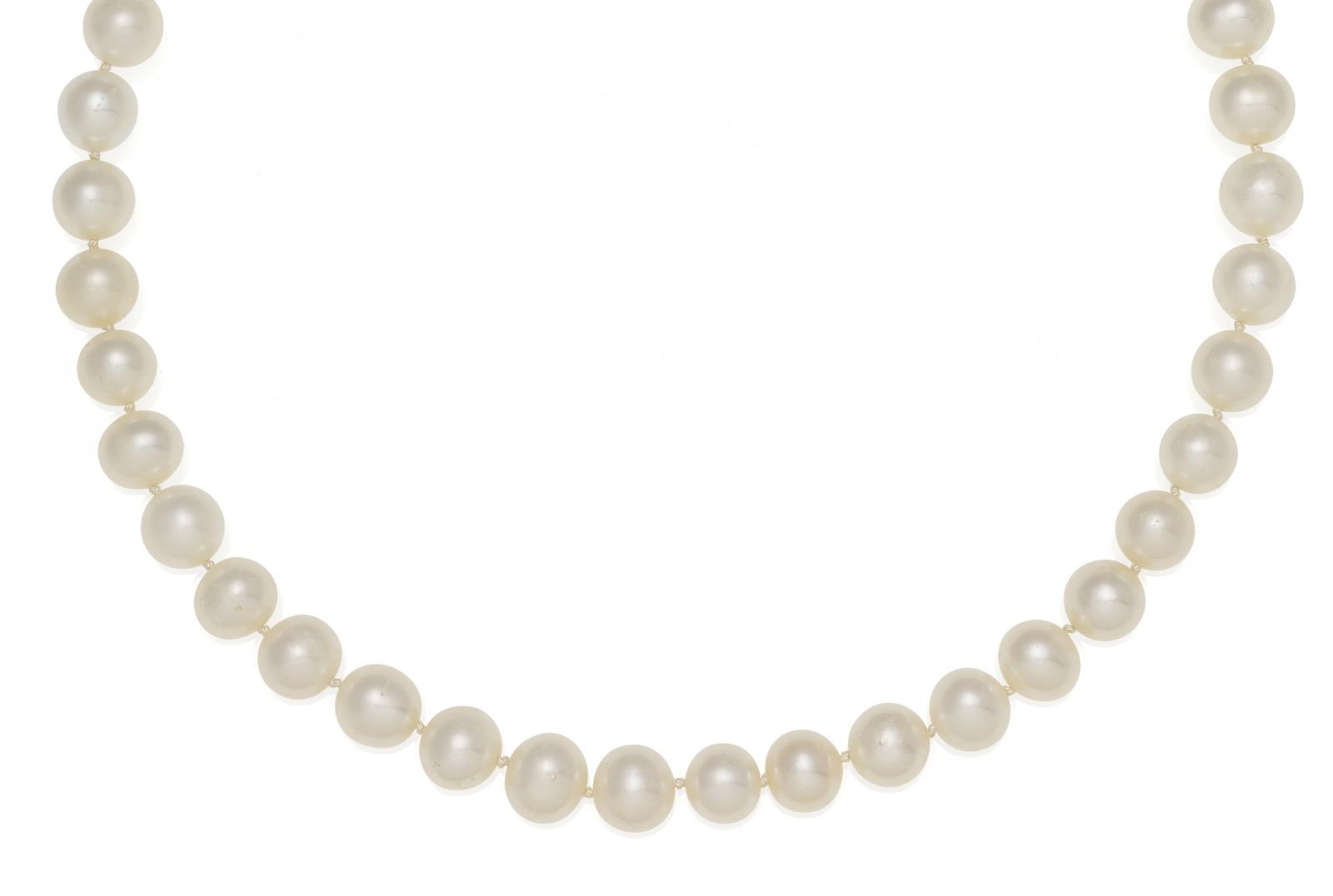 Org. Substanzen: 74 Südsee-Zuchtperlen, rund-unrund, D.ca. 10,3-11,5mm, weiß-creme-irisierendes rosé.