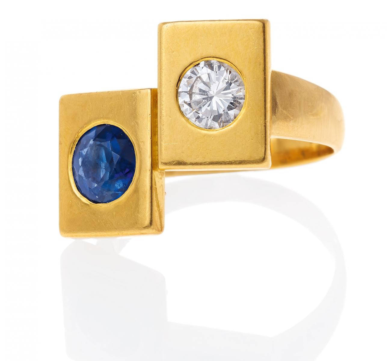 Edelsteine: 1 leicht oval facettierter, synthetischer Saphir ca. 1,2ct..