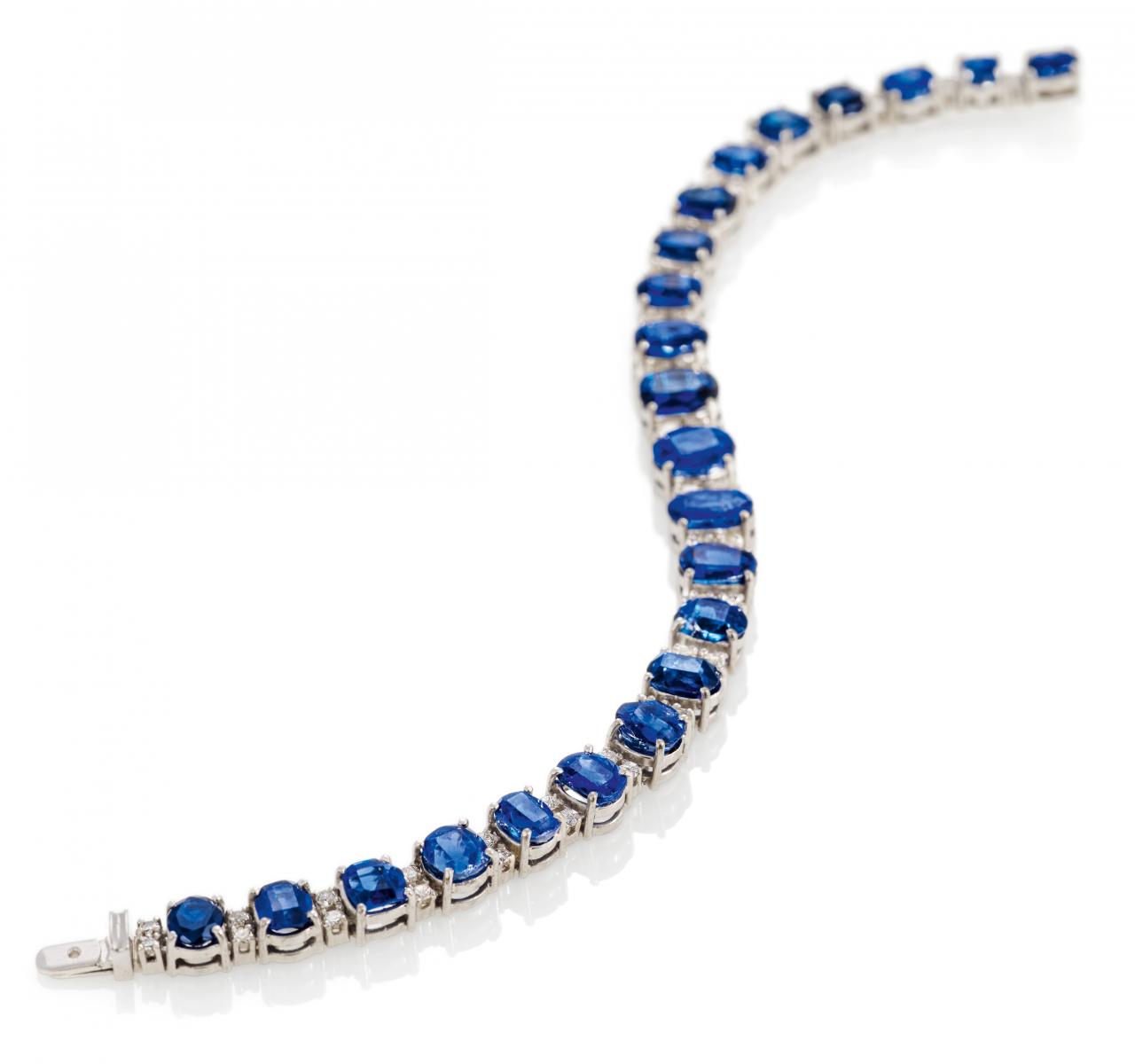 Edelsteine: 23 oval facettierte Saphire, erhitzt, Sri Lanka, zus. ca. 18ct, Tragespuren..