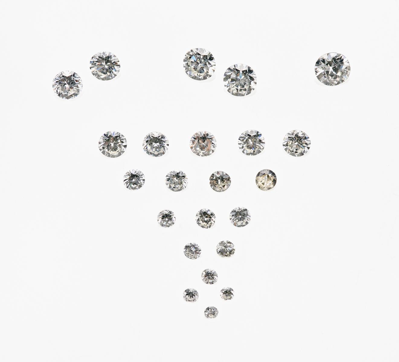 Beschreibung: 18 Brillanten zus. ca. 2,5ct G-L/ VS-P3, einige Steine mit Ausbrüchen, 1