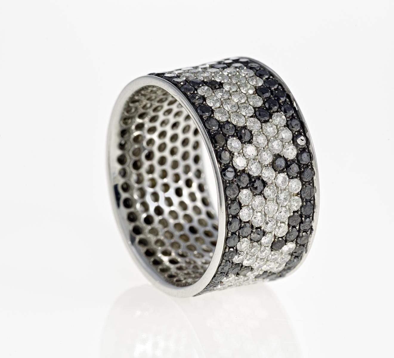 Diamanten: Ca. 157 Brillanten zus.ca. 2,2ct H-I/ SI1-2, ca. 130 schwarze Diamanten zus.ca. 1,9ct (behandelt)..