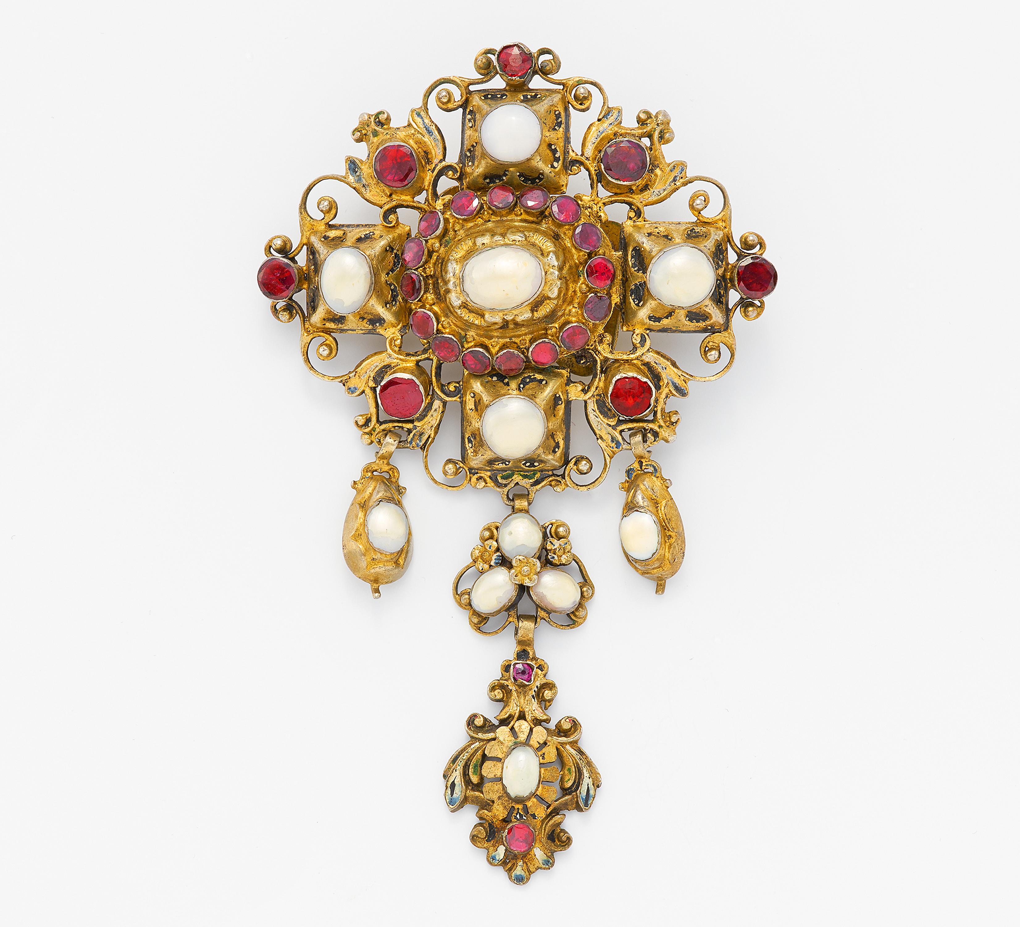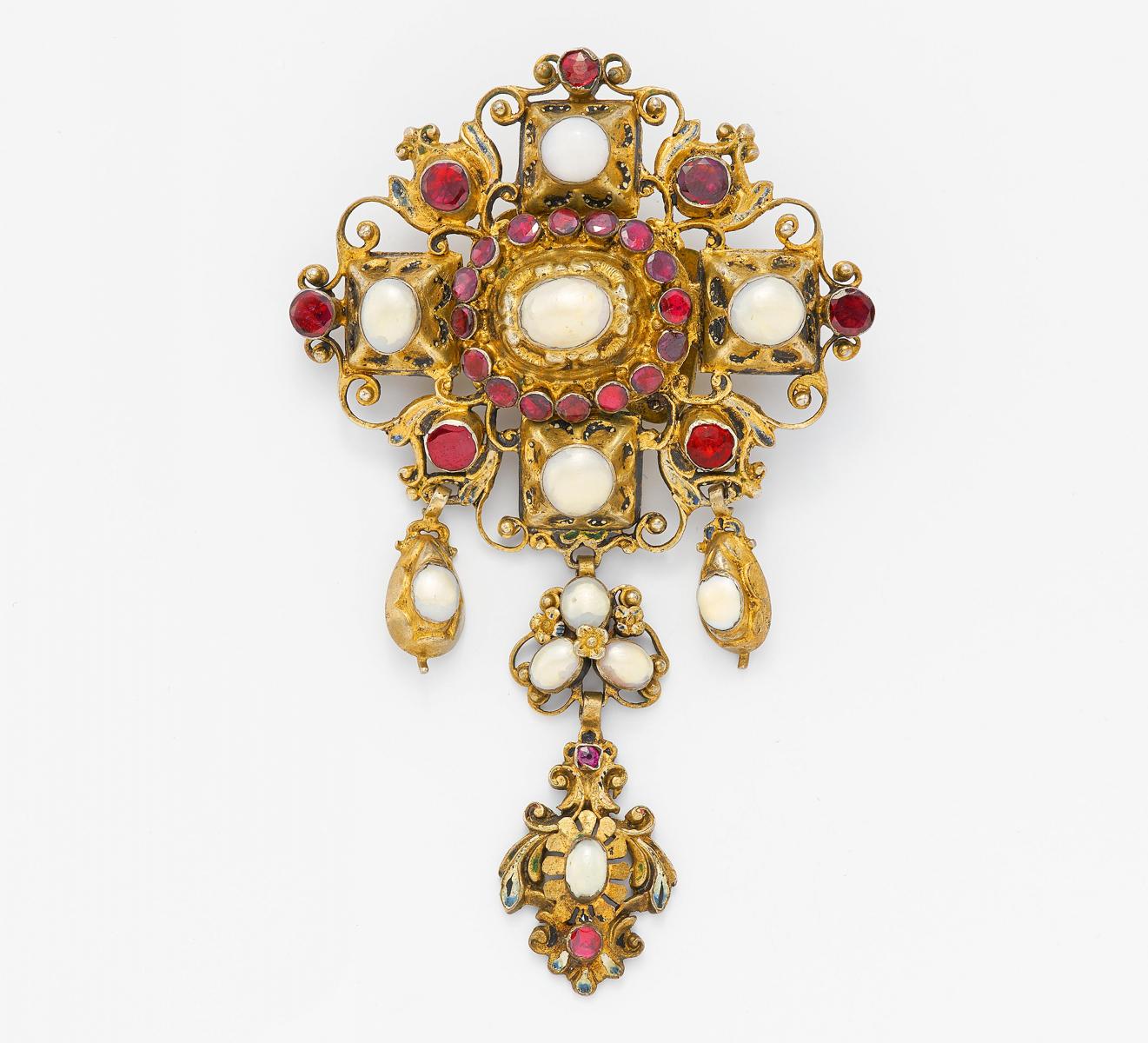 Beschreibung: Email stark beschädigt, Steine mit Abplatzungen.