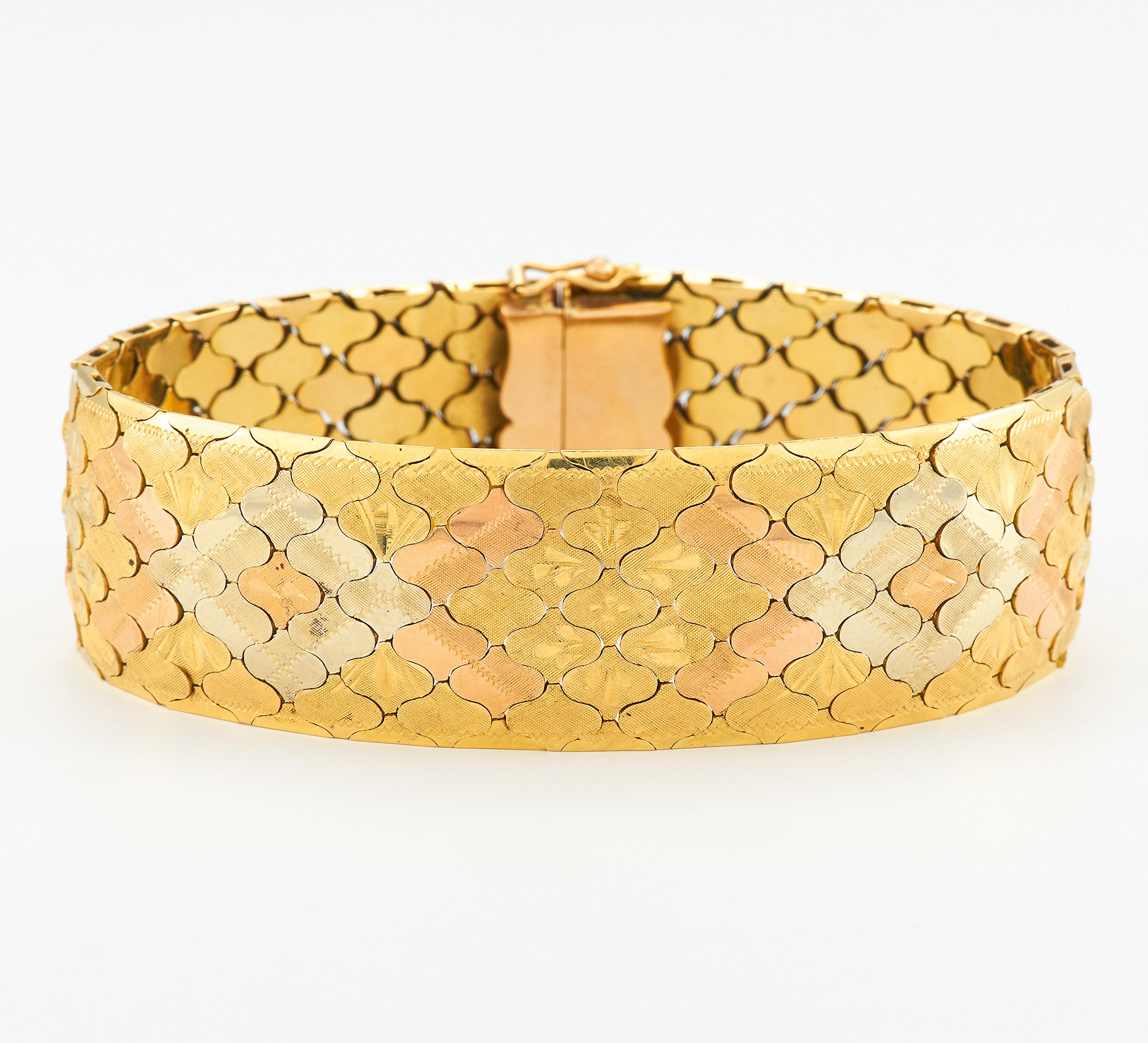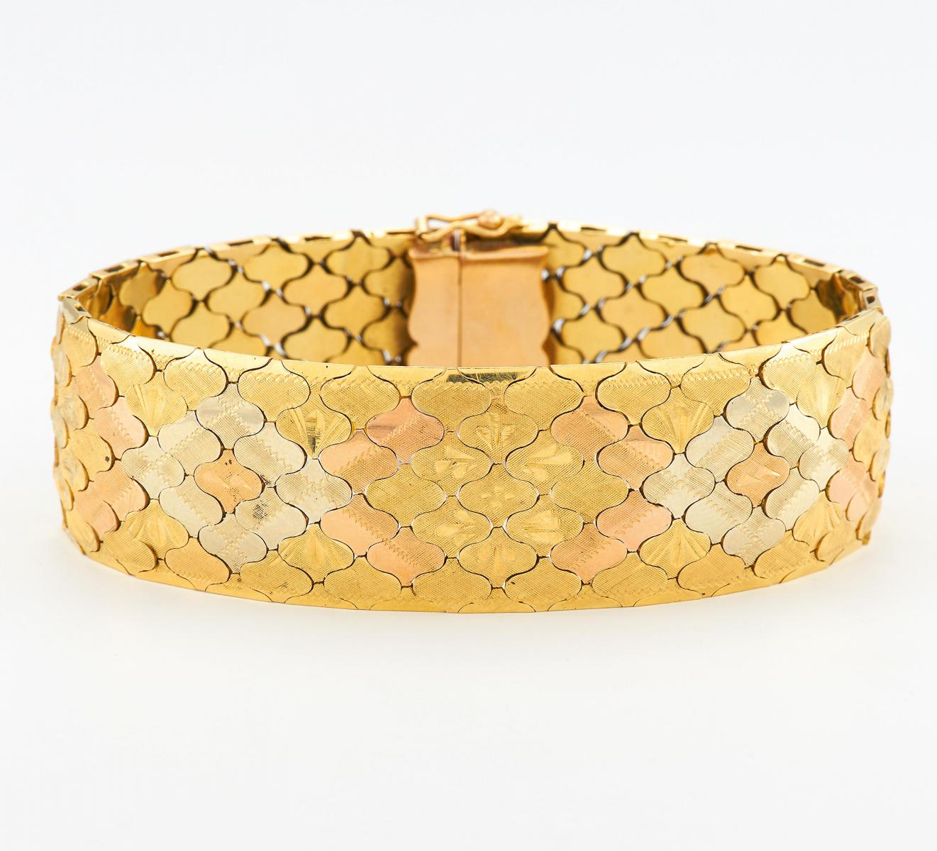 Material: 585/- Weiß-, Rosé- und Gelbgold.
