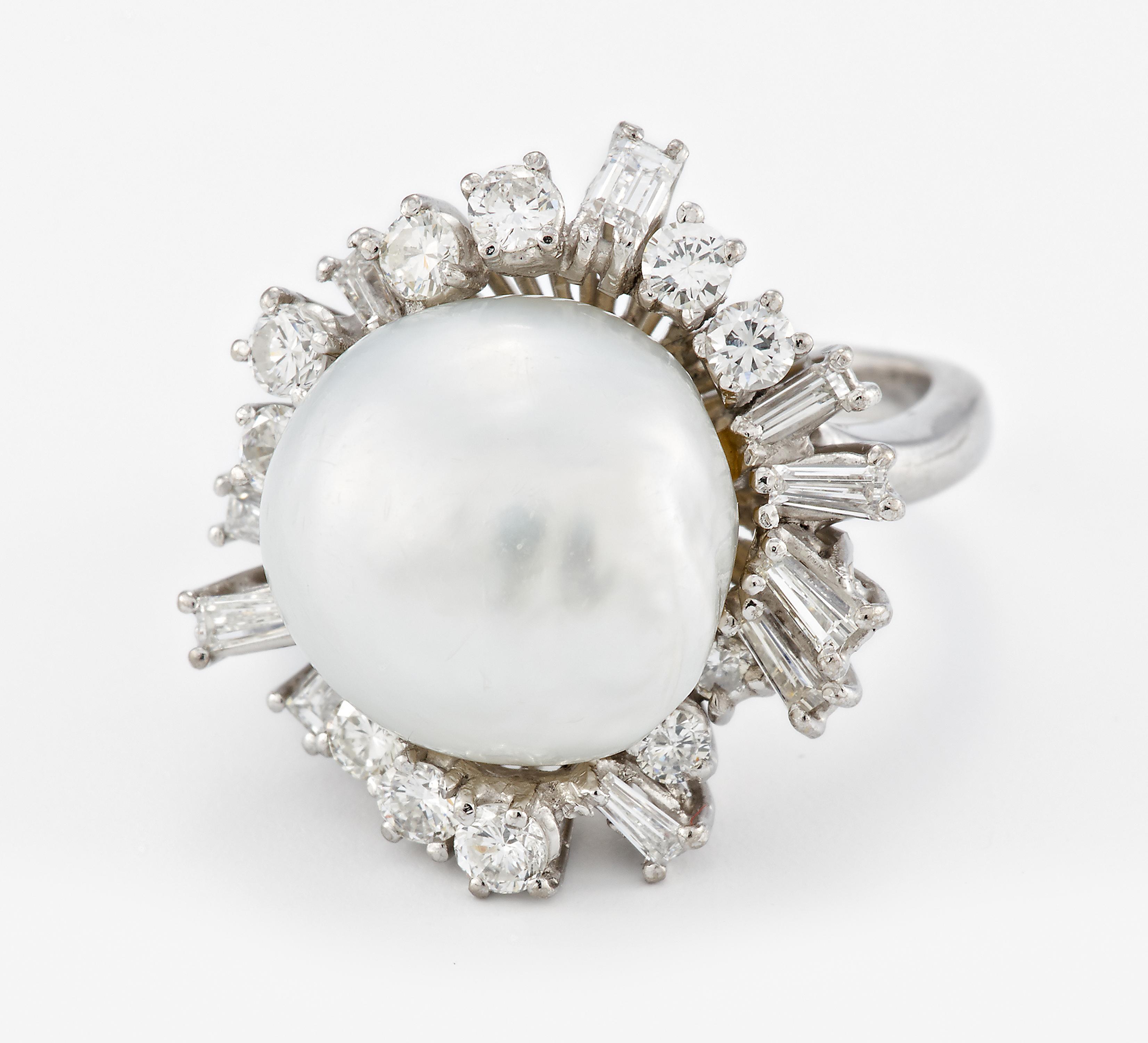 Org. Substanzen: 1 barocke Zuchtperle, anthrazit-irisierendes-weiß.