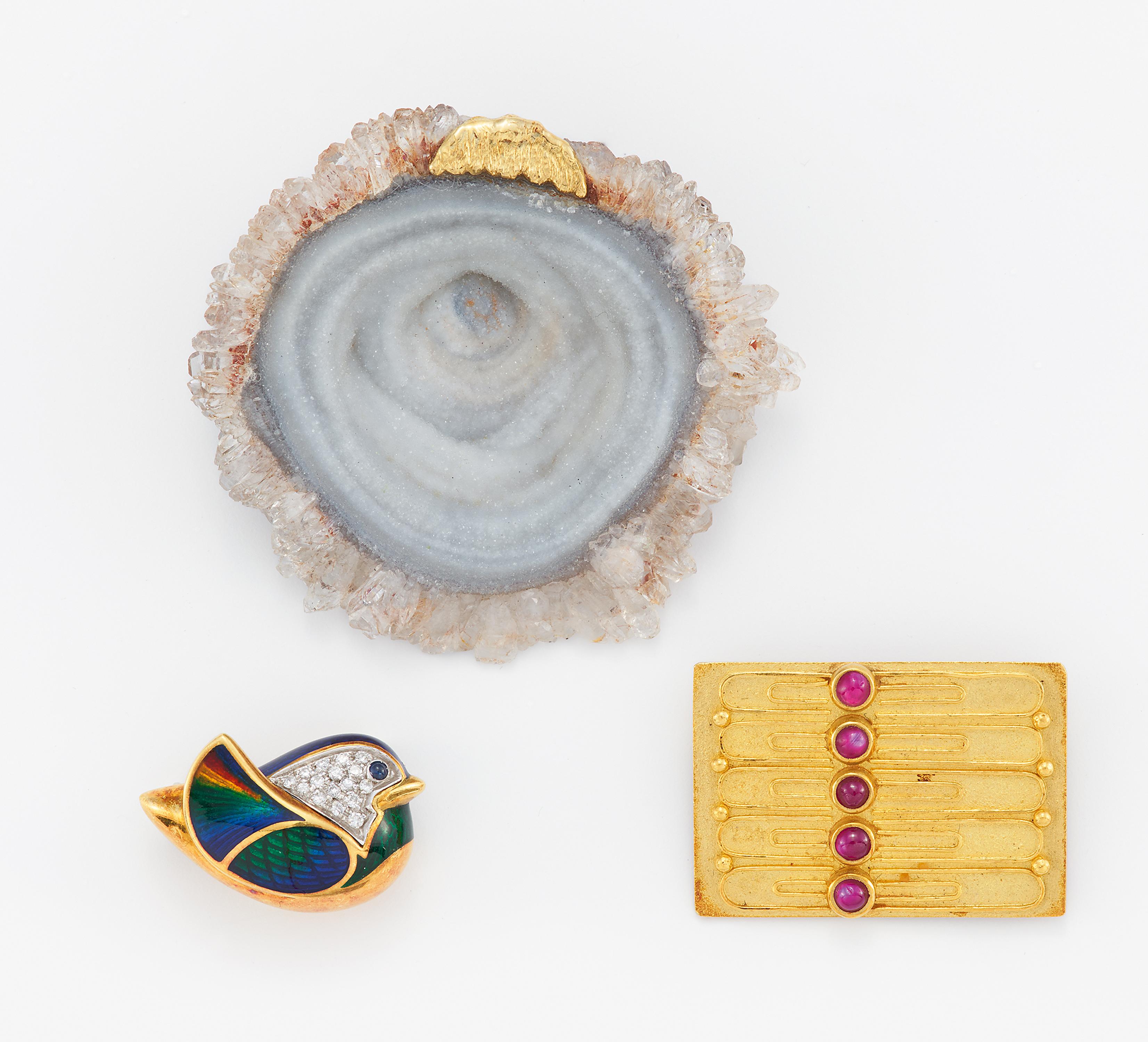 Material: 750/-, 585/- Gelbgold, gest., farbiges Email.
