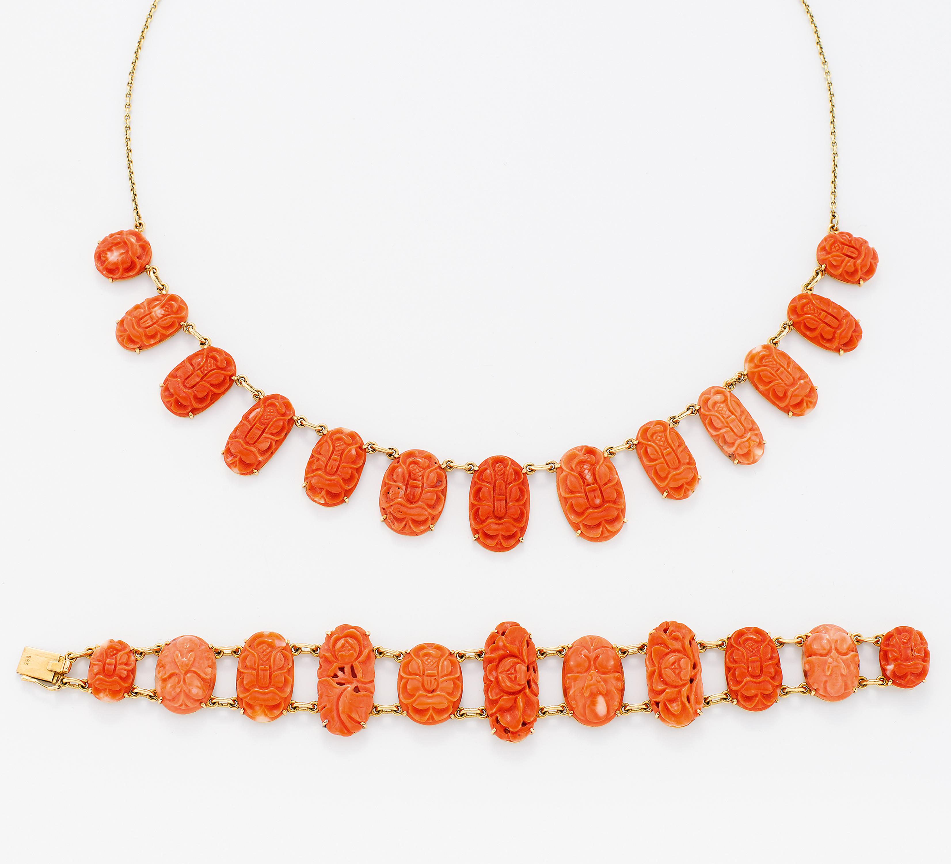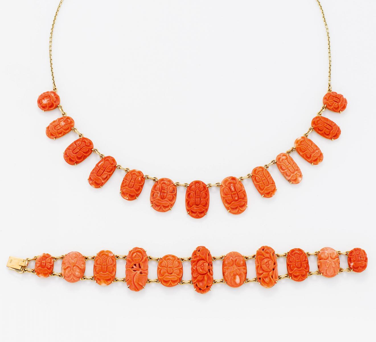 Maße: Armband: L.ca. 21,0cm, Collier: L.ca. 41,0cm.