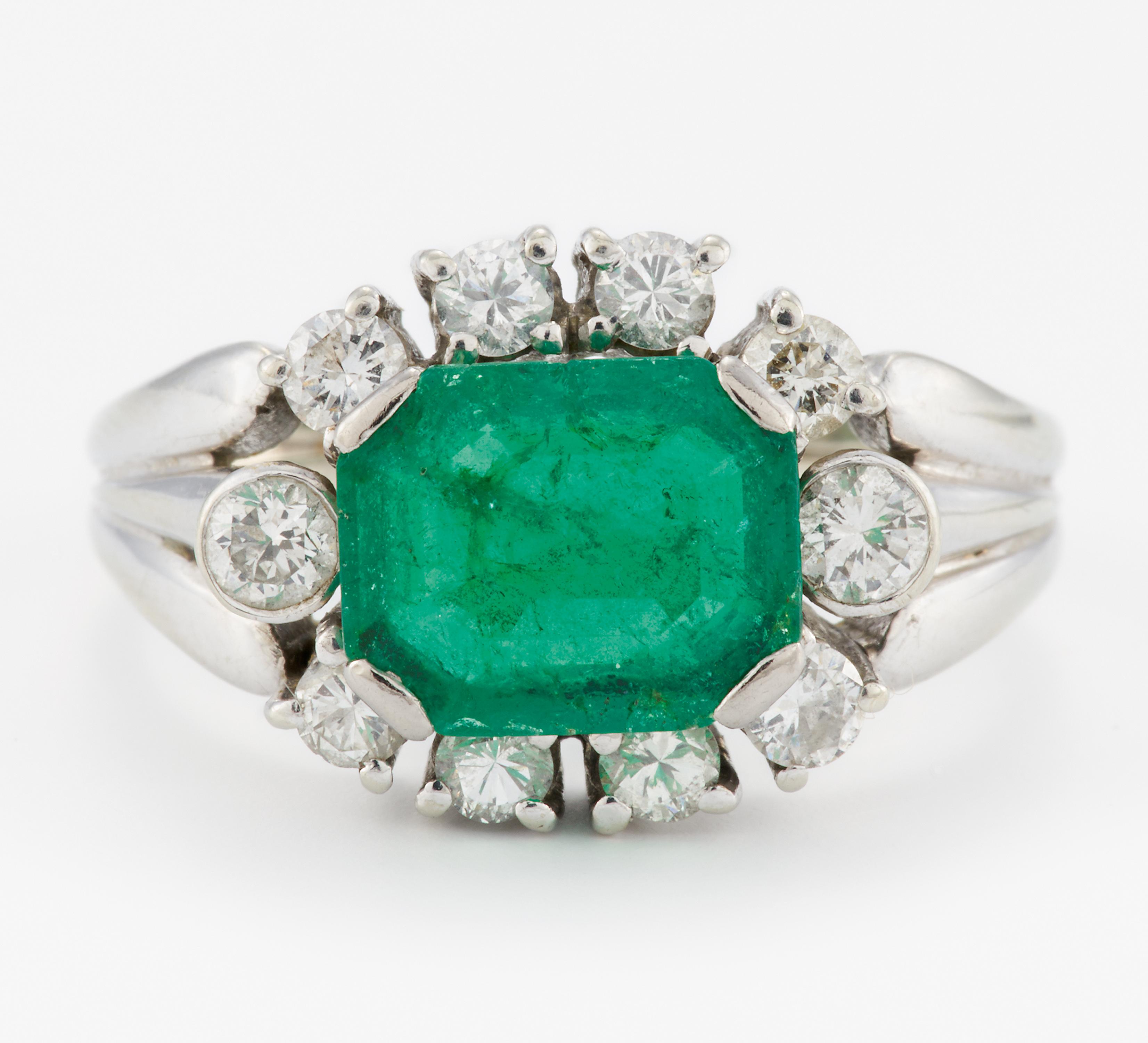 Edelsteine: 1 rechteckig facettierter Smaragd..