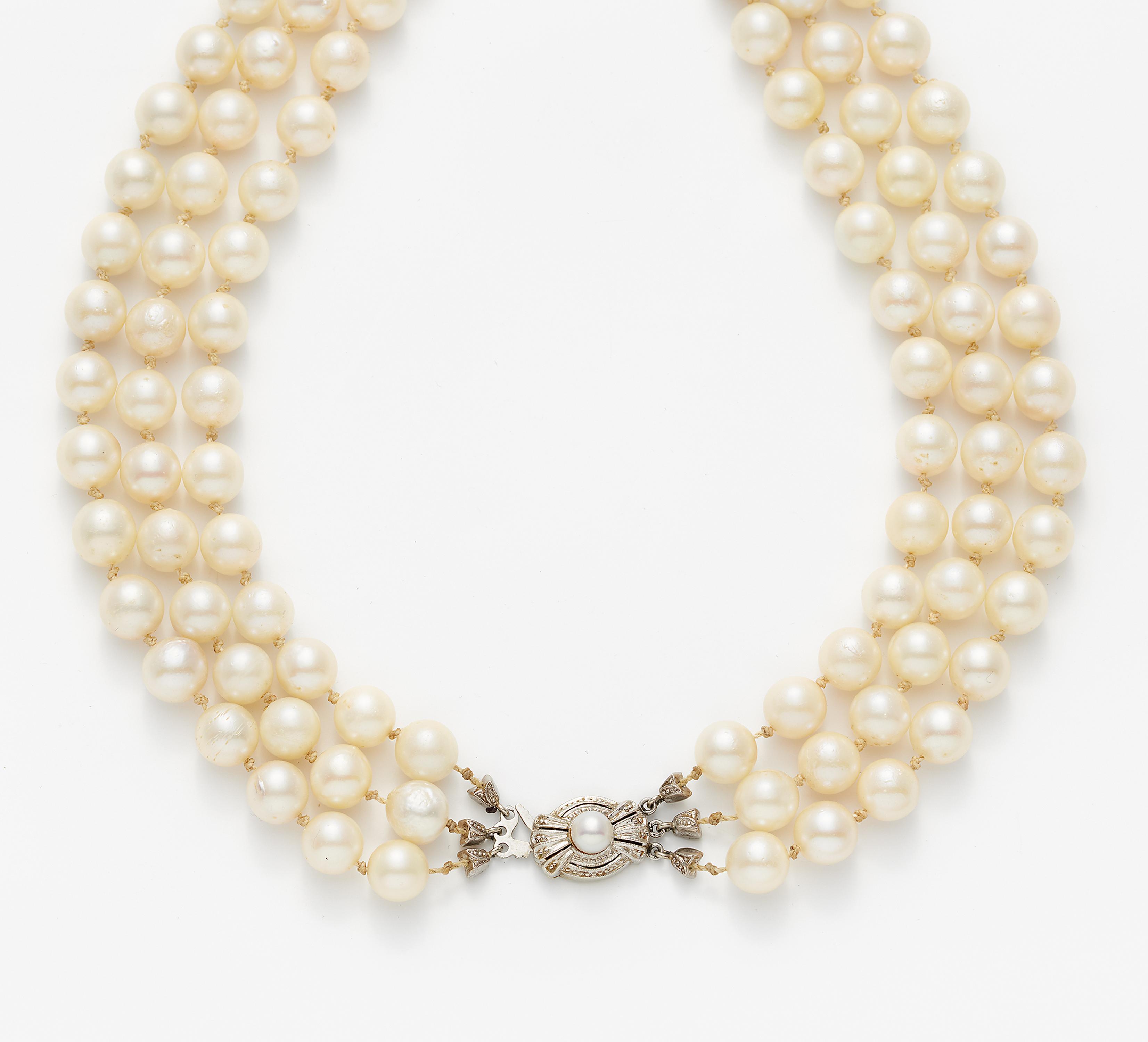 Org. Substanzen: Ca. 163 Akoya-Zuchtperlen, D.ca. 7,71mm, crème-rosé.