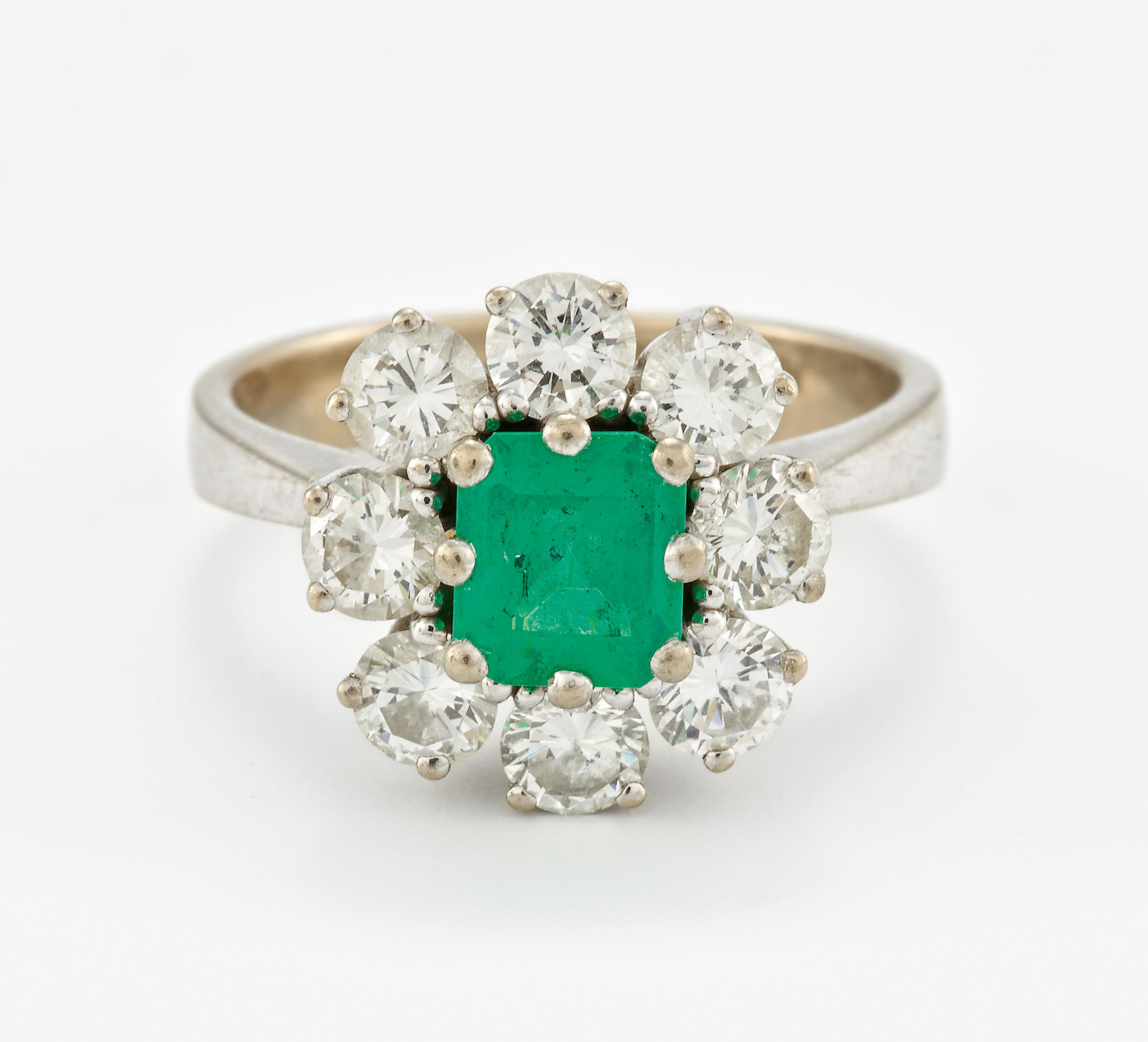 Edelsteine: 1 rechteckiger, facettierter Smaragd..