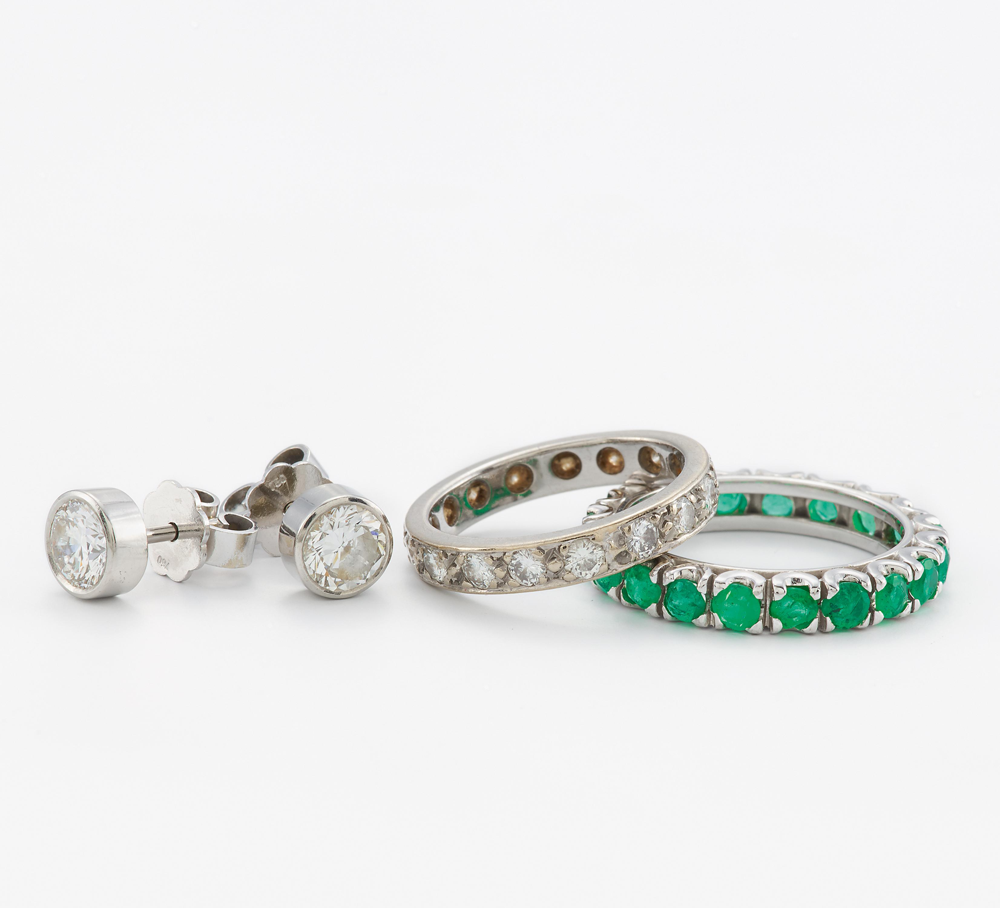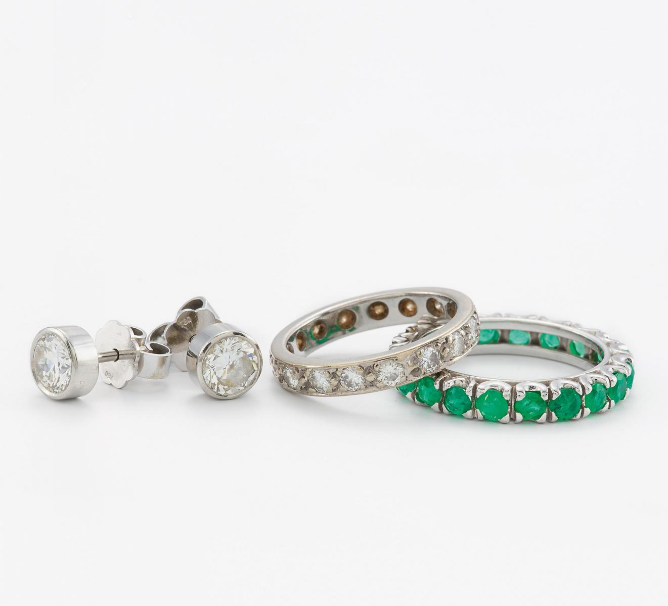 KONVOLUT: ZWEI RINGE UND DIAMANT-OHRSTECKER.