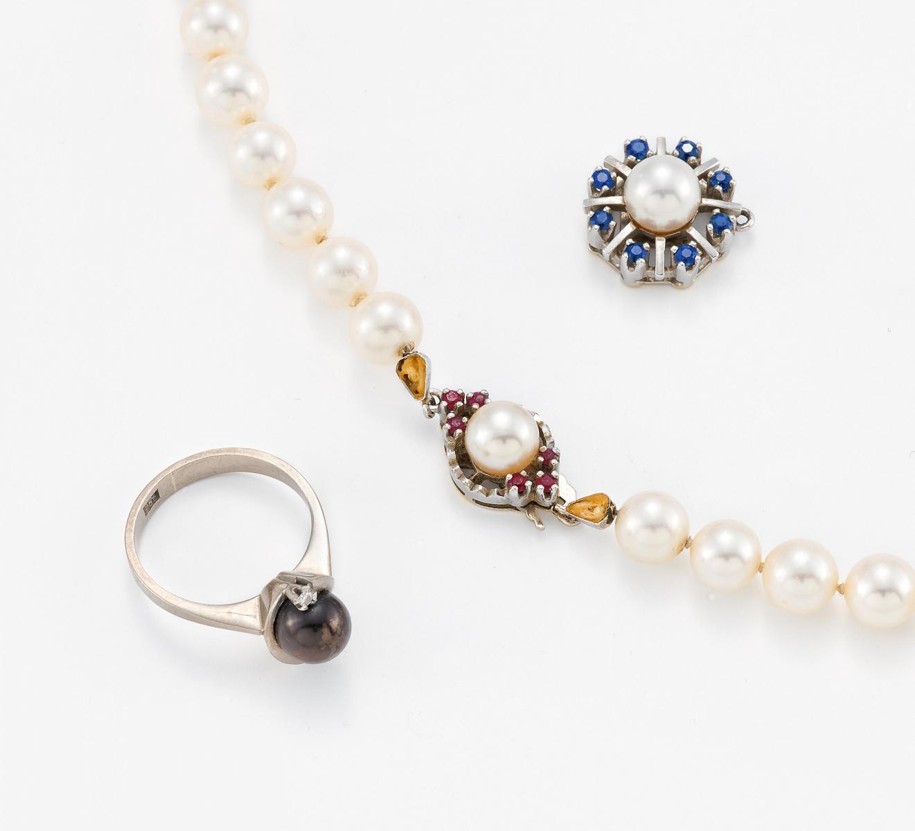 Org. Substanzen: ca. 76 Akoya-Zuchtperlen, 1 schwarze Zuchtperle.