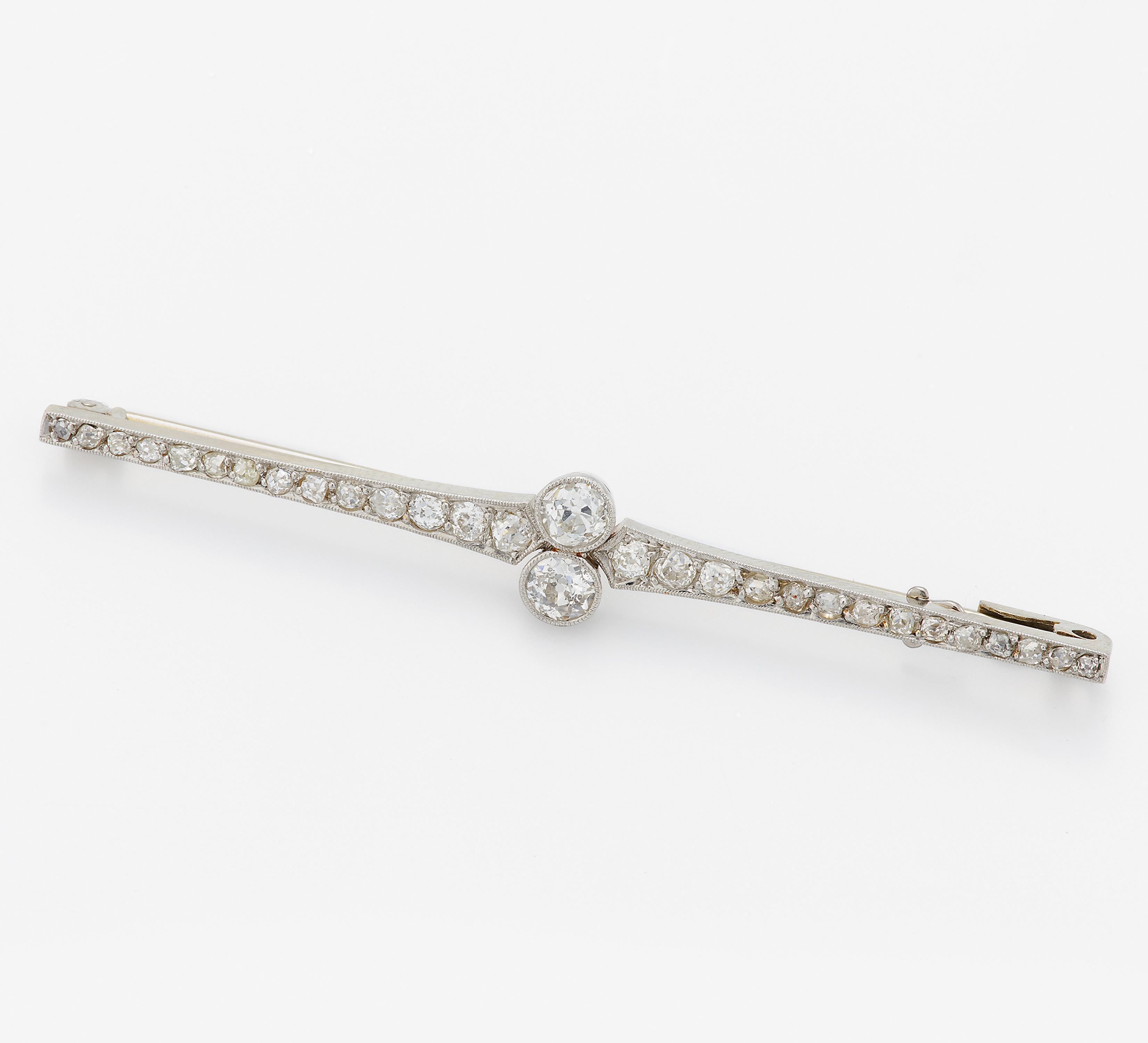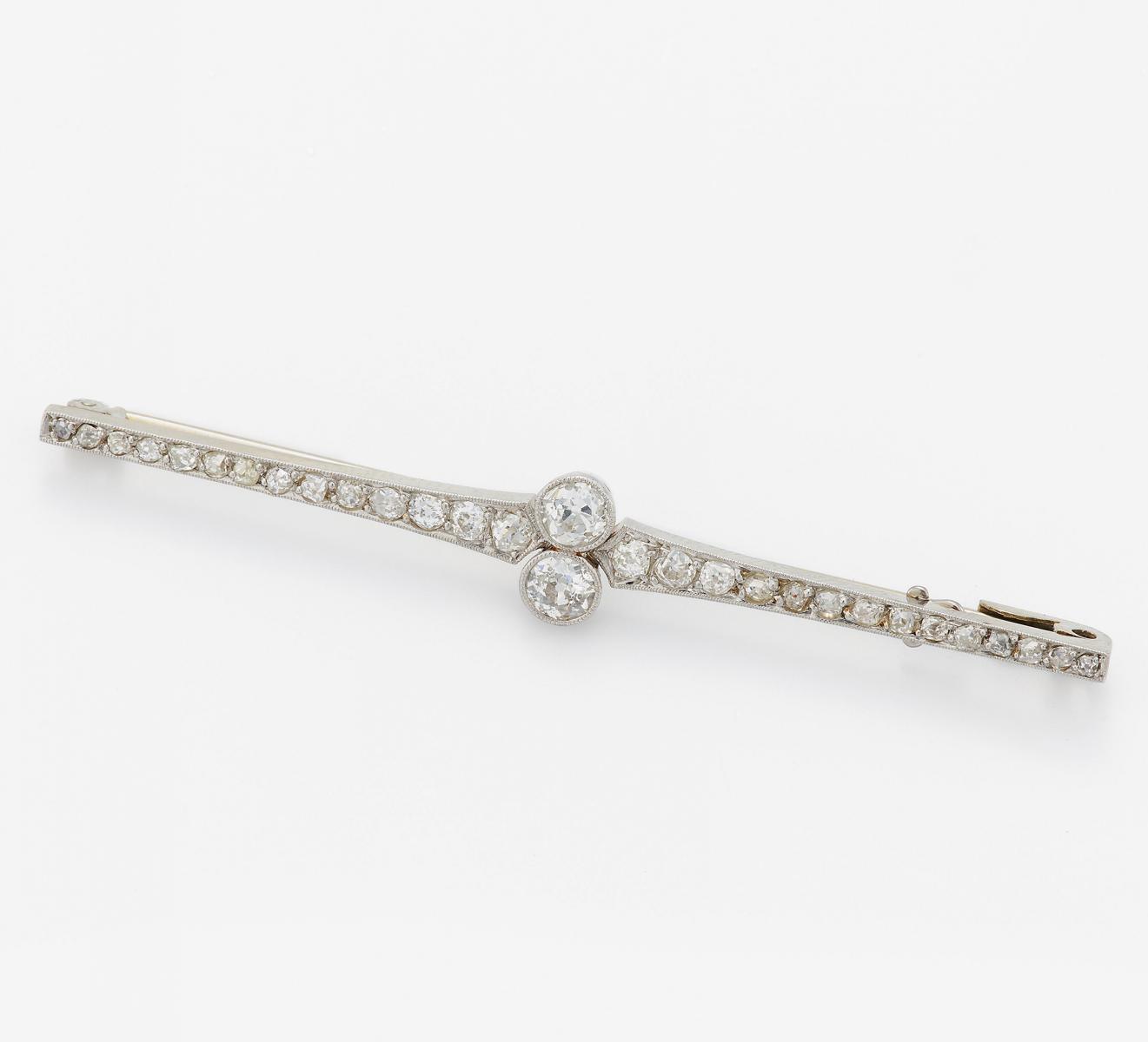Diamanten: Ca. 30 Diamanten im Altschliff, D.ca. 1,2-4,3mm.
