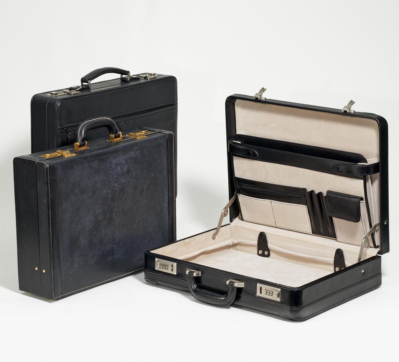 Beschreibung: An einem Koffer flaches Außenfach mit Reißverschluss. Zahlenschloss.
