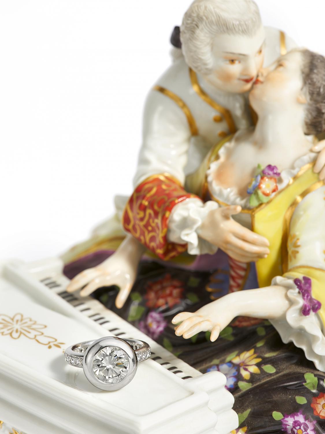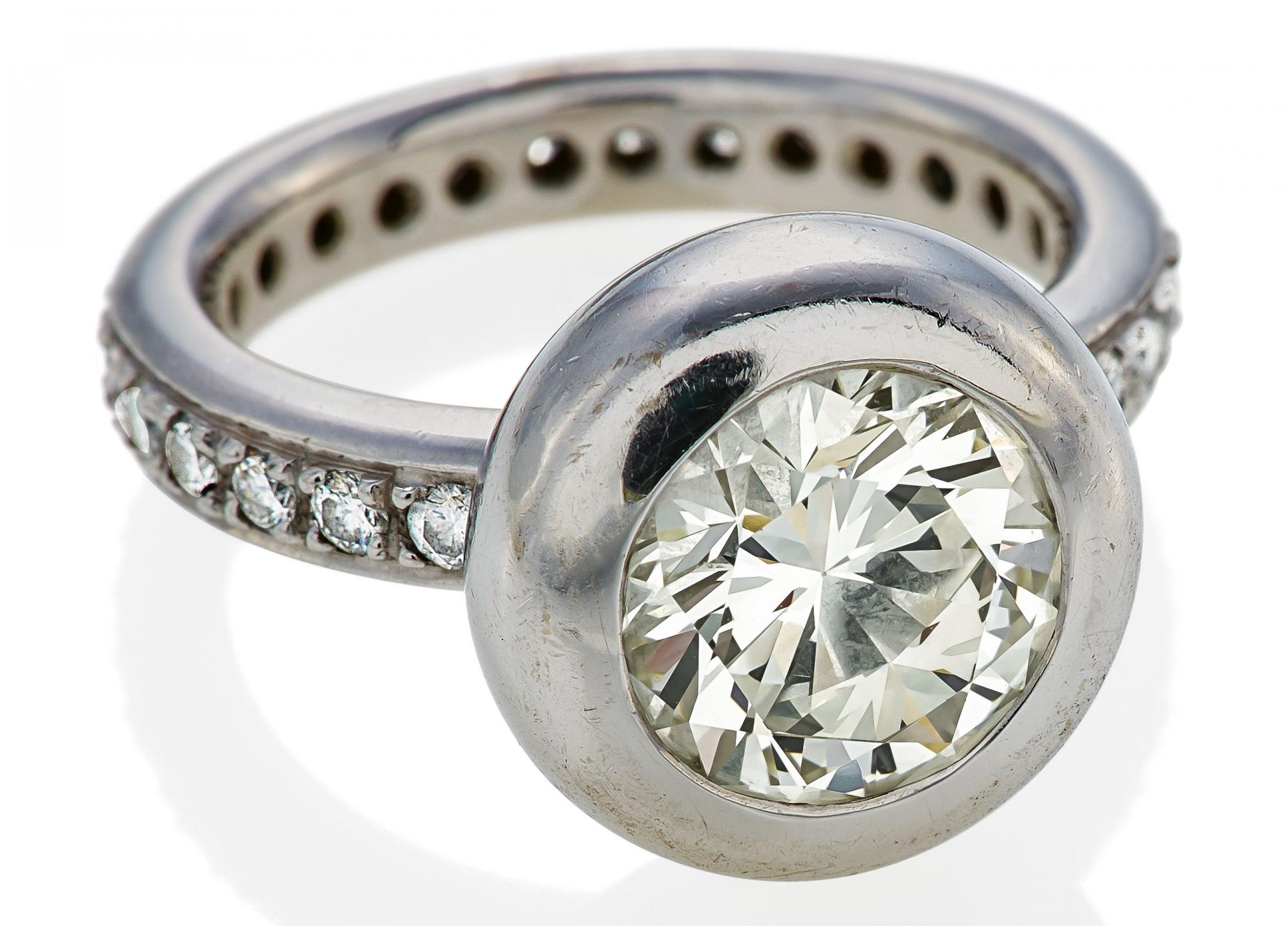 Diamanten: 1 Brillant, Angabe laut DDI/Pforzheim Expertise: ca. 3,32 ct., K-L/VS1, 25 Brillanten zus. ca. 0,5 ct..