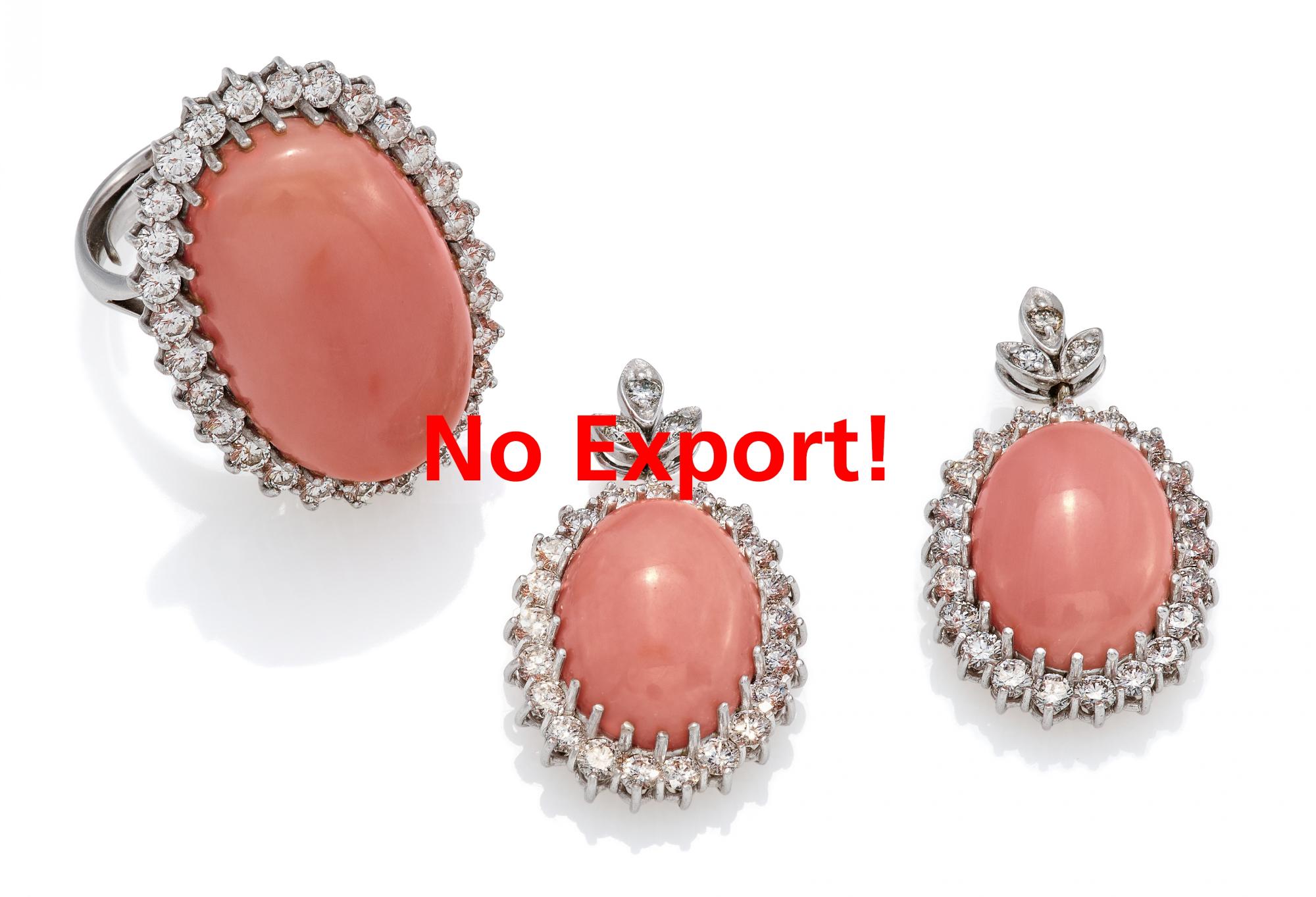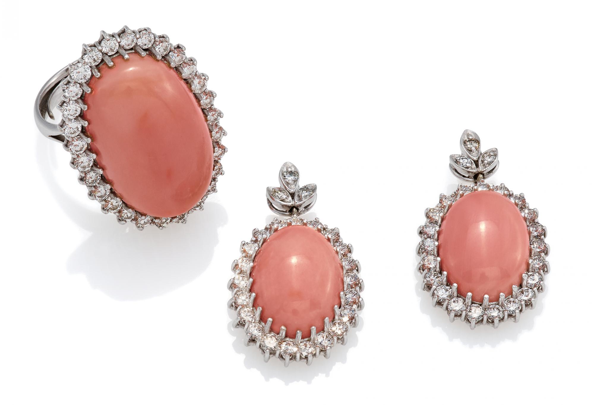 KORALL-SET: RING UND OHRGEHÄNGE.