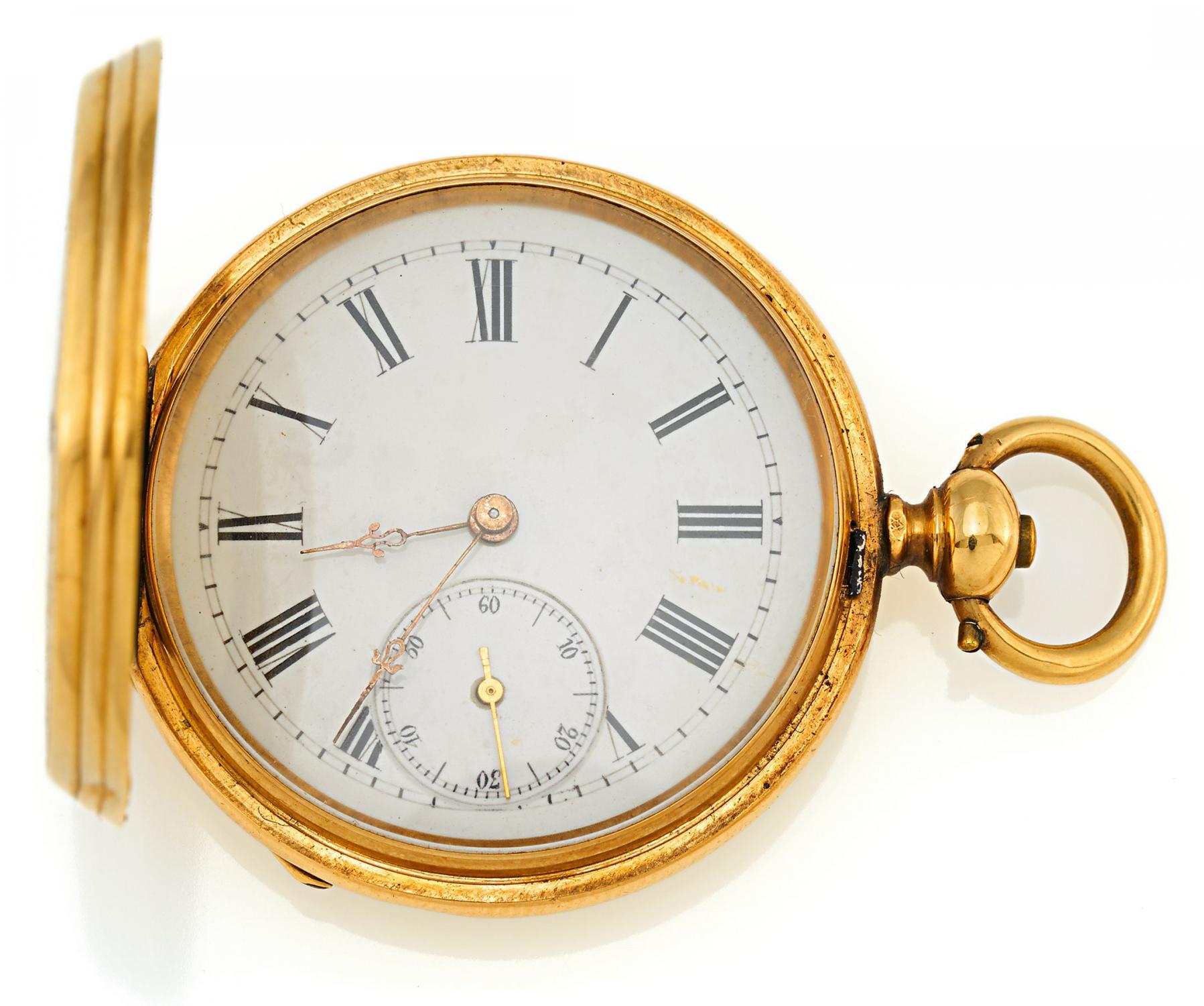 Gehäuse: Guter Zustand, Tragespuren, Sprungdeckelfeder defekt, Risse in Dekor oder Email.