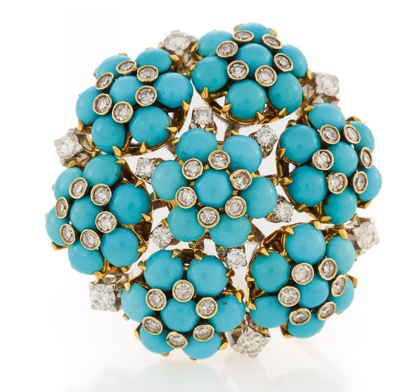 Edelsteine: 49 runde Türkis-Cabochons Ø ca. 3,8 mm..