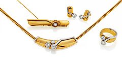 DIAMANT-SET: KRAWATTENKLAMMER, RING, OHRSTECKER, COLLIER.