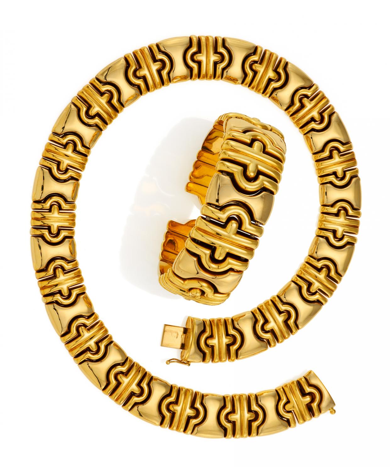 GOLD-SET: HALSKETTE UND ARMREIF.