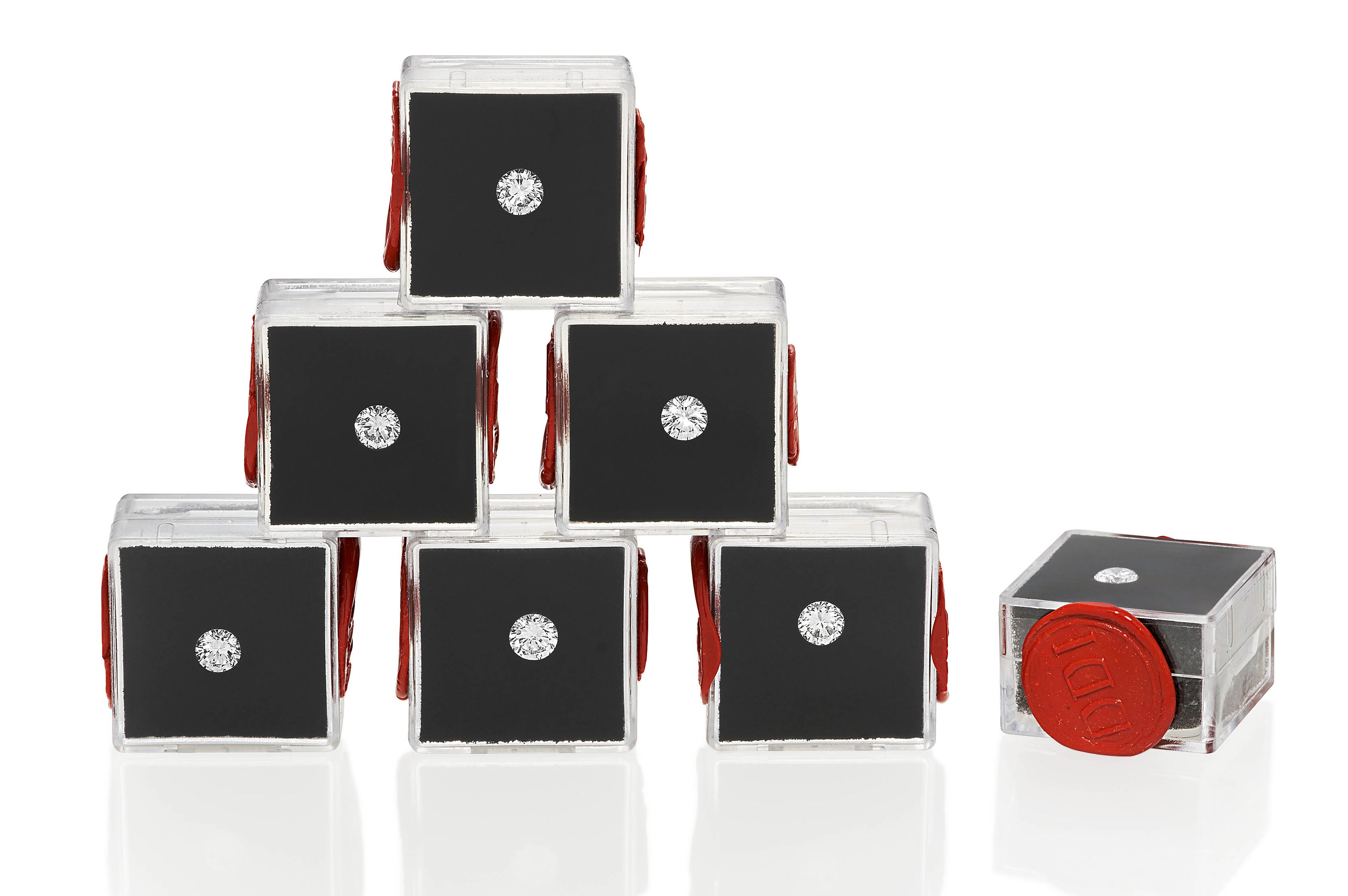 Ca. 0,661 ct., G/VVS1; ca. 0,640 ct., G/IF; ca. 0,637 ct., G/VVS1; ca. 0,684 ct., E/VVS1; ca. 0,733 ct., D/VVS2; ca. 0,642 ct., E/VVS1; ca. 0,675 ct., E/IF.