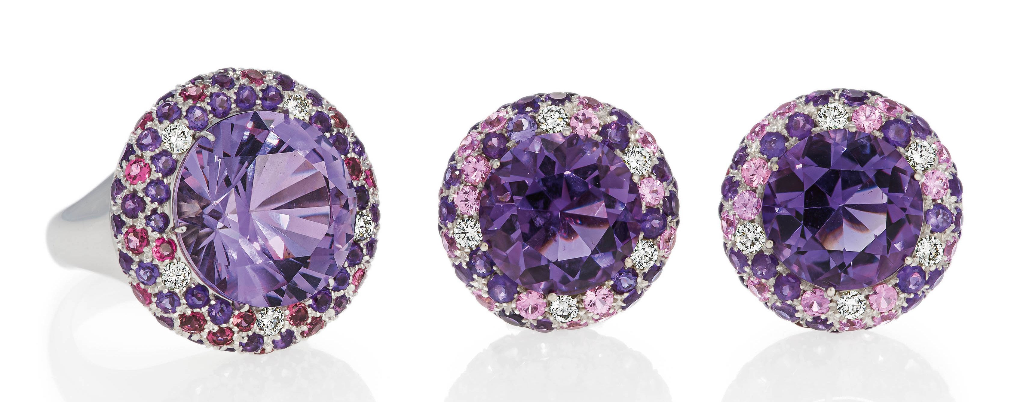 Edelsteine: 3 Amethyste zus. ca. 20,0 ct., ca. 120 Amethyste zus. ca. 5,0 ct., ca. 57 Turmaline zus. ca. 2,2 ct.