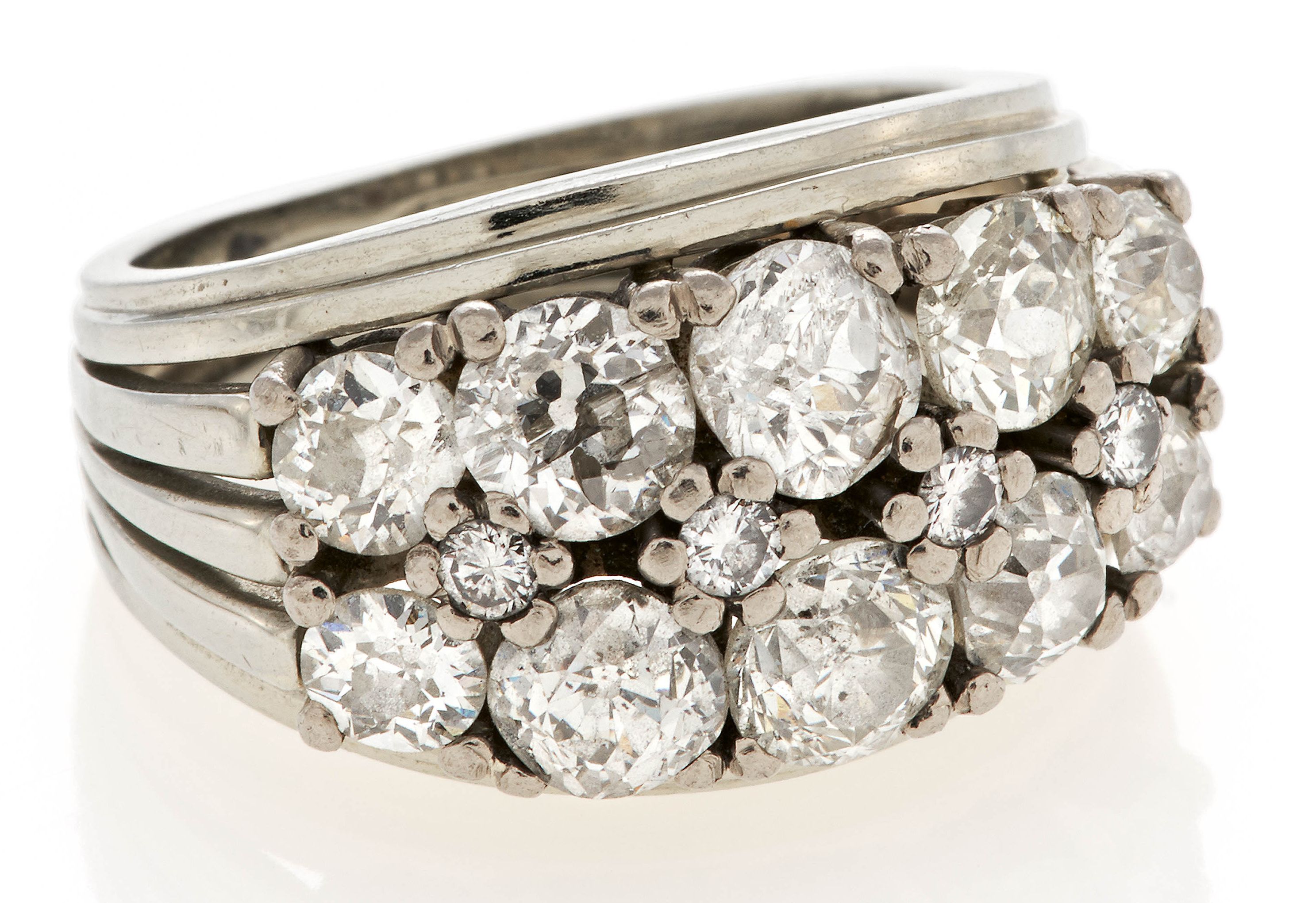 Diamanten: 10 Brillanten im Alt-Schliff zus. ca. 2,0 ct., P1/J-L, 4 kleine Brillanten.