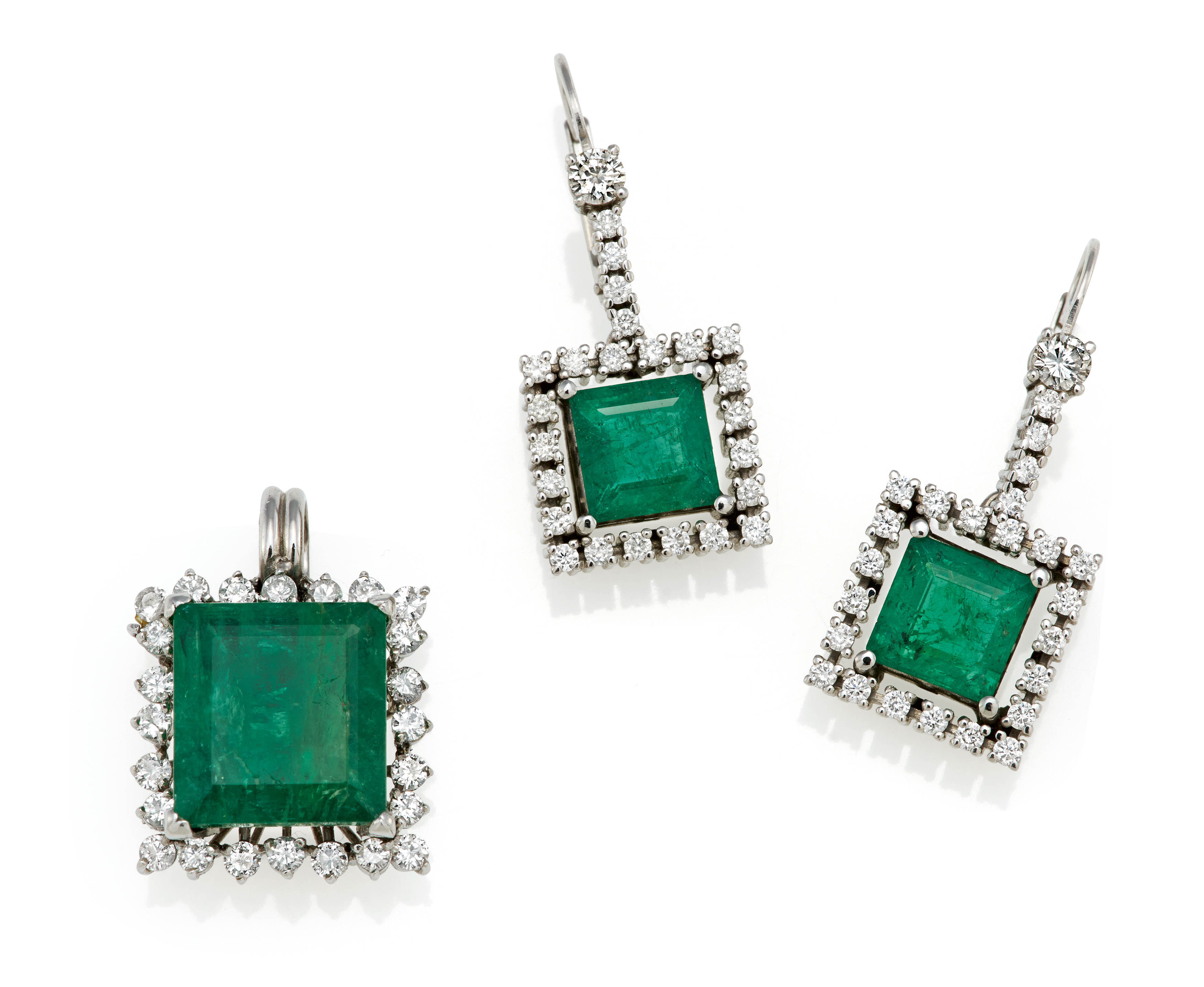 SMARGAD-SET: ANHÄNGER UND OHRHÄNGER.