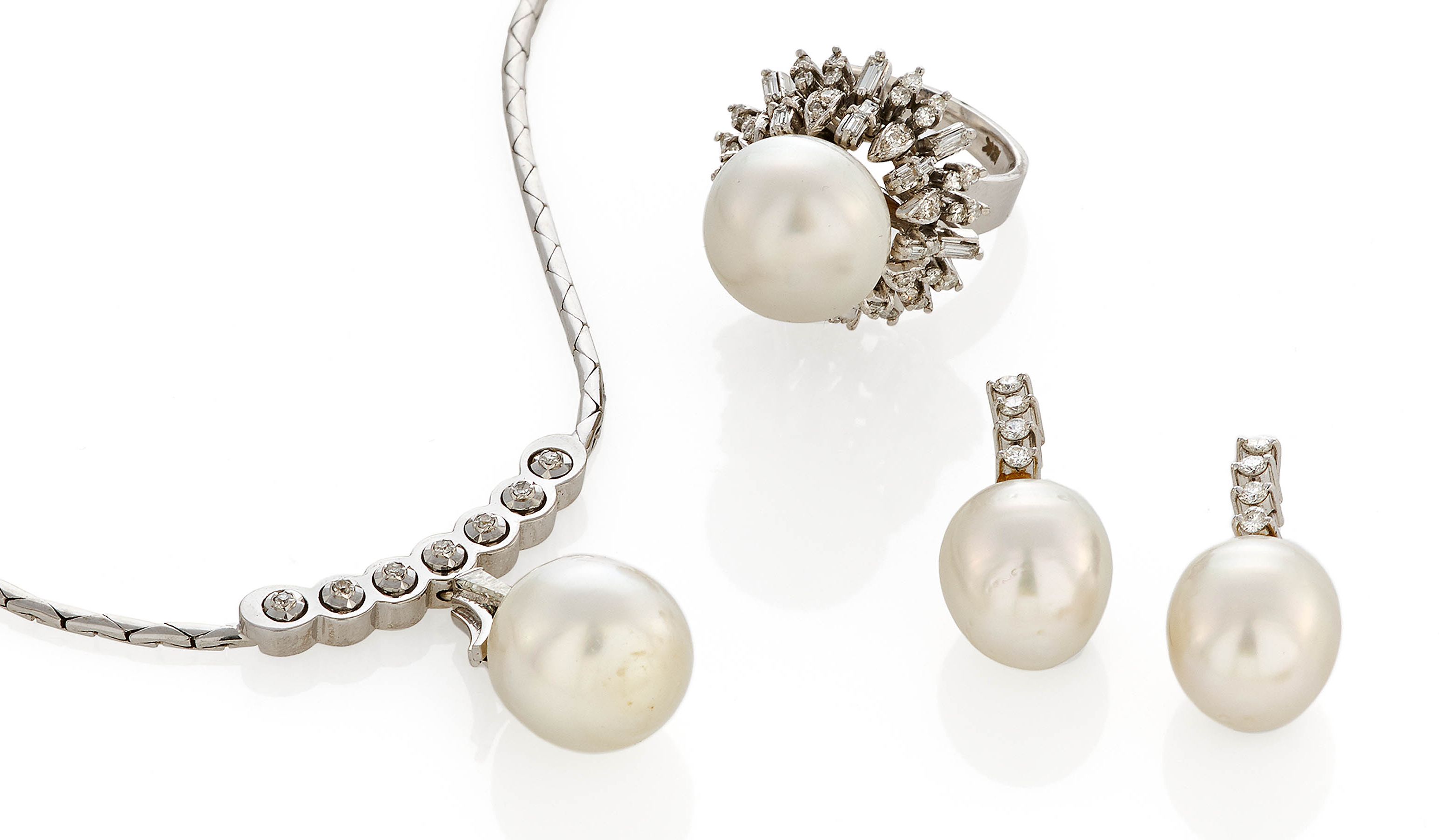 SET: PERL-COLLIER, RING UND OHRHÄNGER.