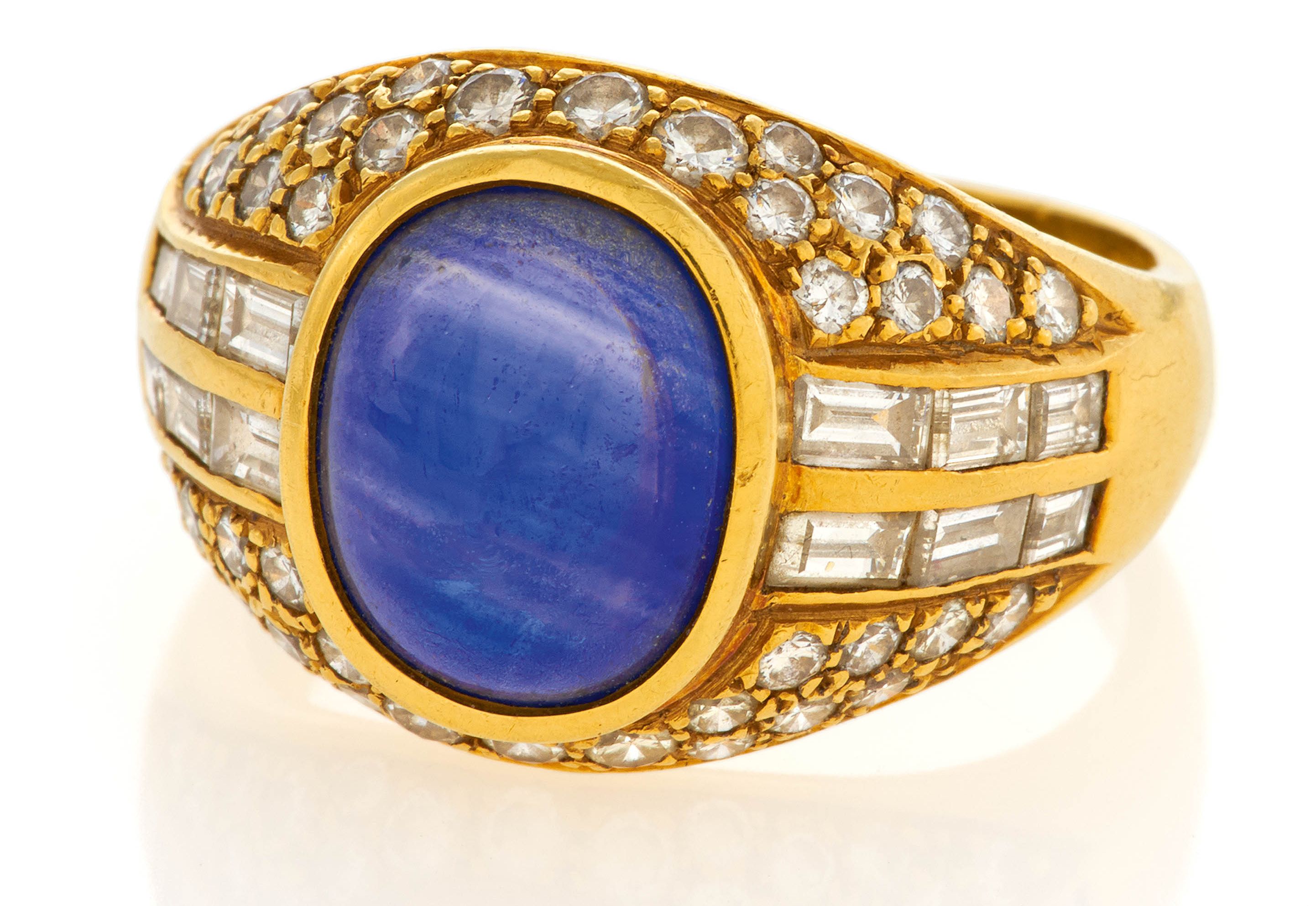 Edelsteine: 1 Saphir-Cabochon ca. 4,3 ct.