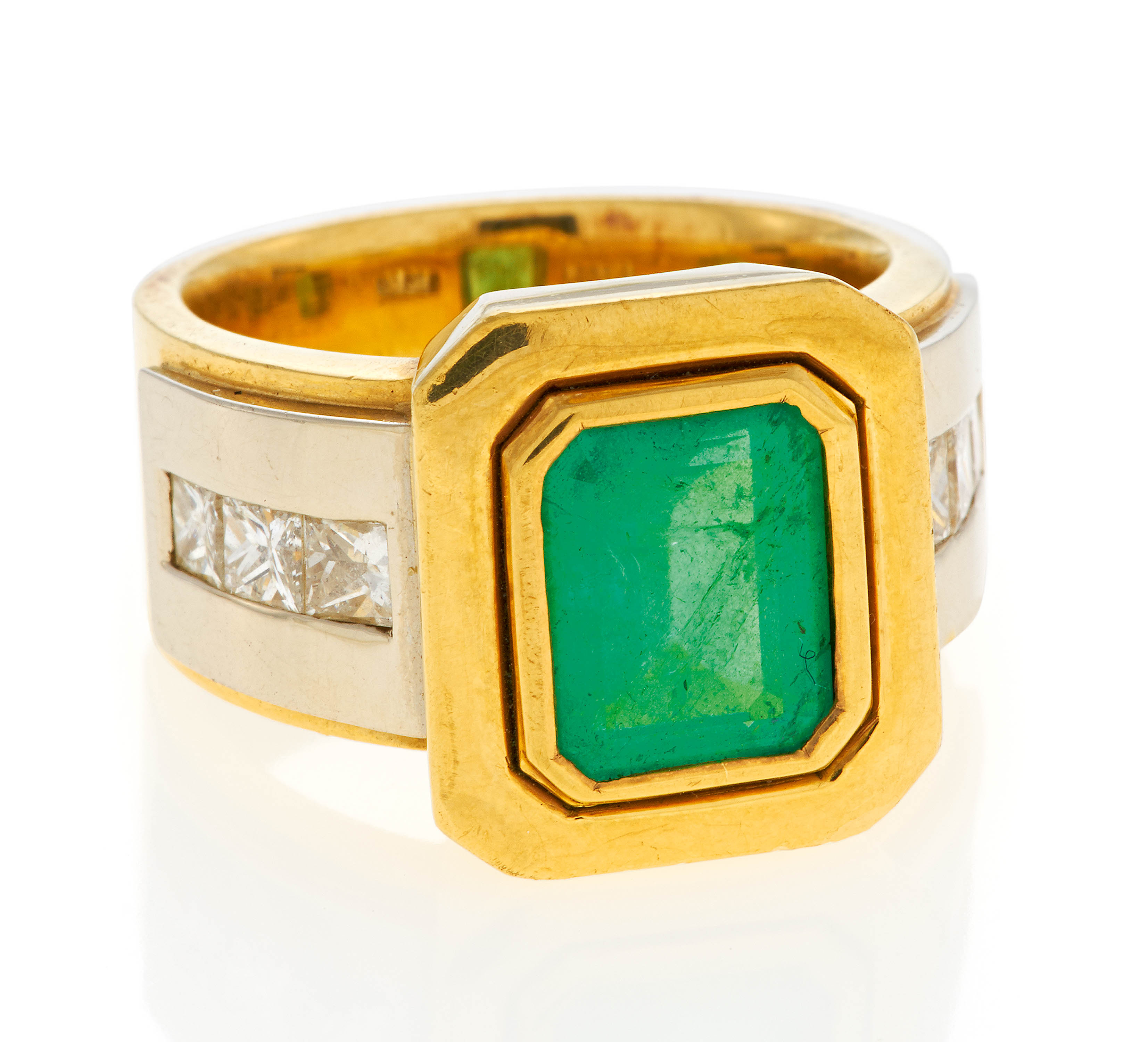 Edelsteine: 1 Smaragd im oktogonalen Treppen-Schliff ca. 2,3 ct.