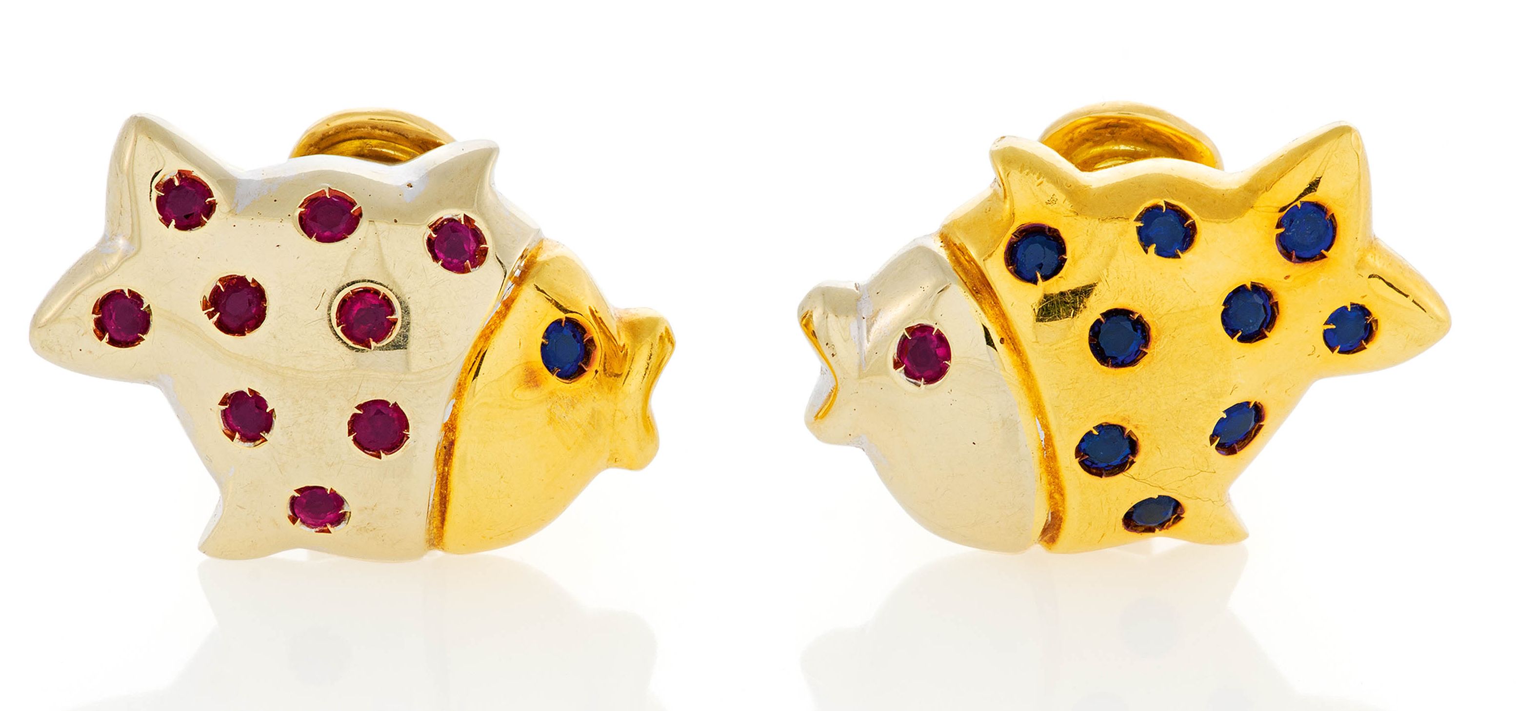 Edelsteine: 10 runde, facettierte, kleine Rubine Ø ca. 2,2 mm, 10 runde, facettierte Saphire Ø ca. 2,1 mm.