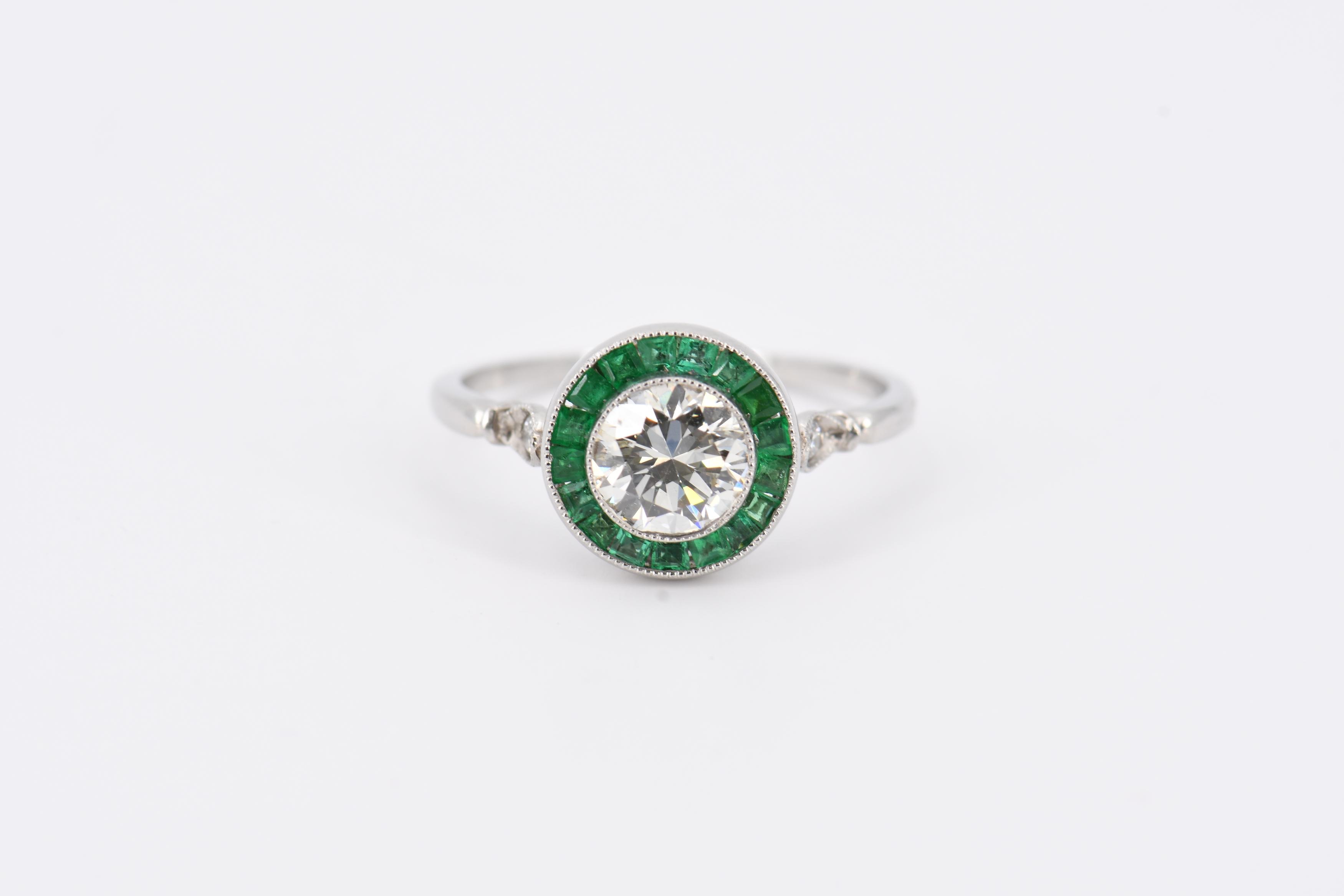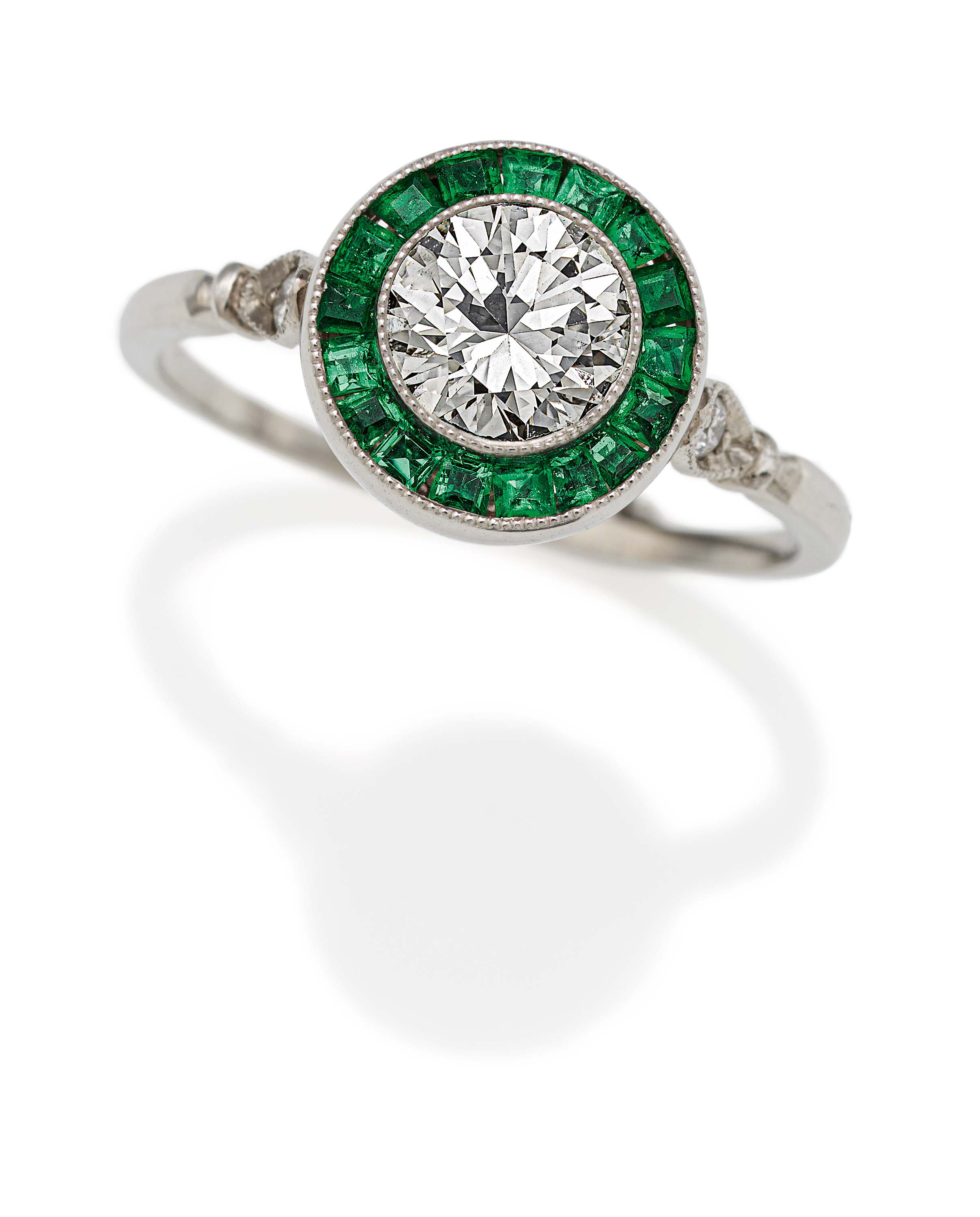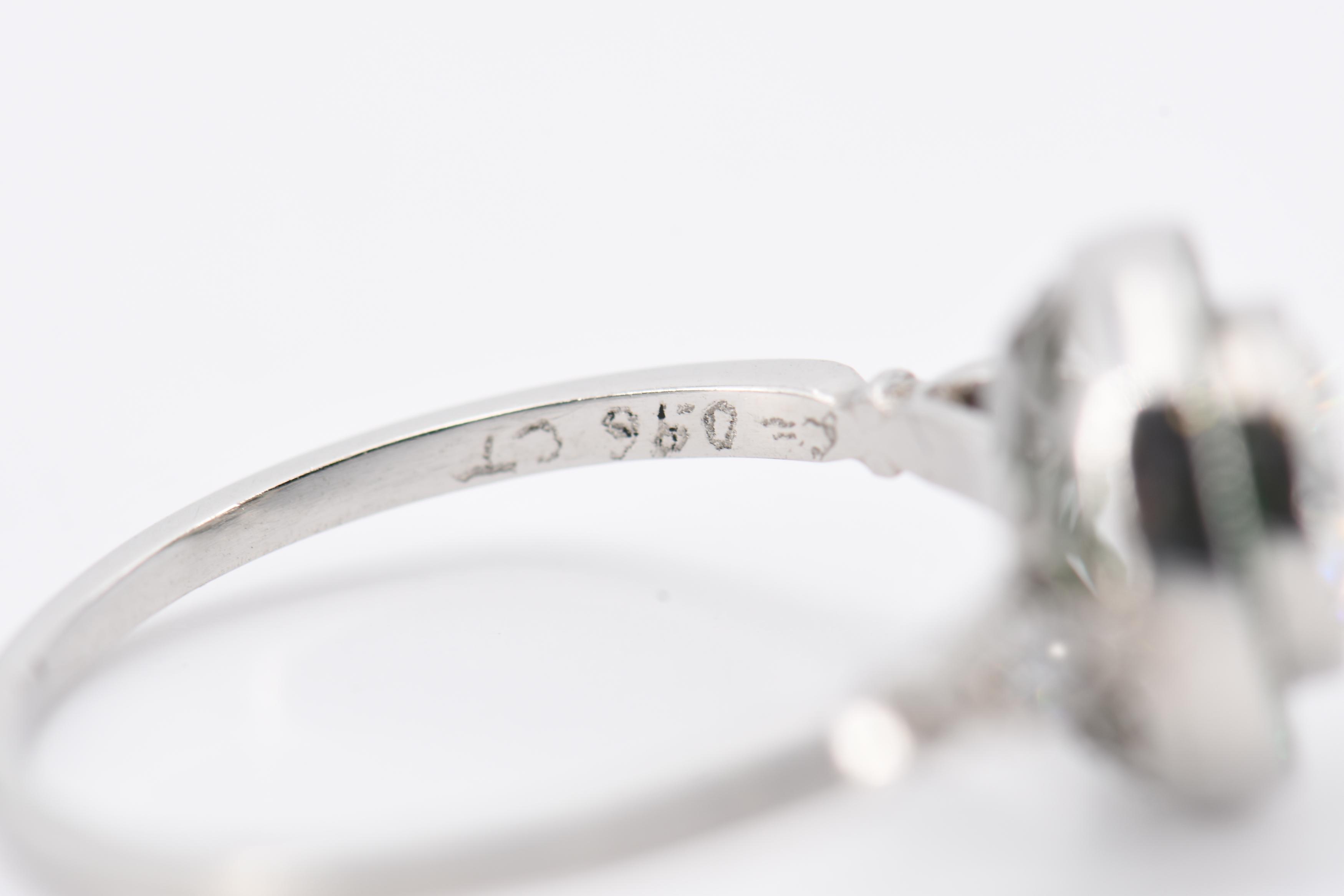 Diamanten: 1 Brillant ca. 0,9 ct., in Ringschiene vermerkt VVS/N, 2 kleine Brillanten.