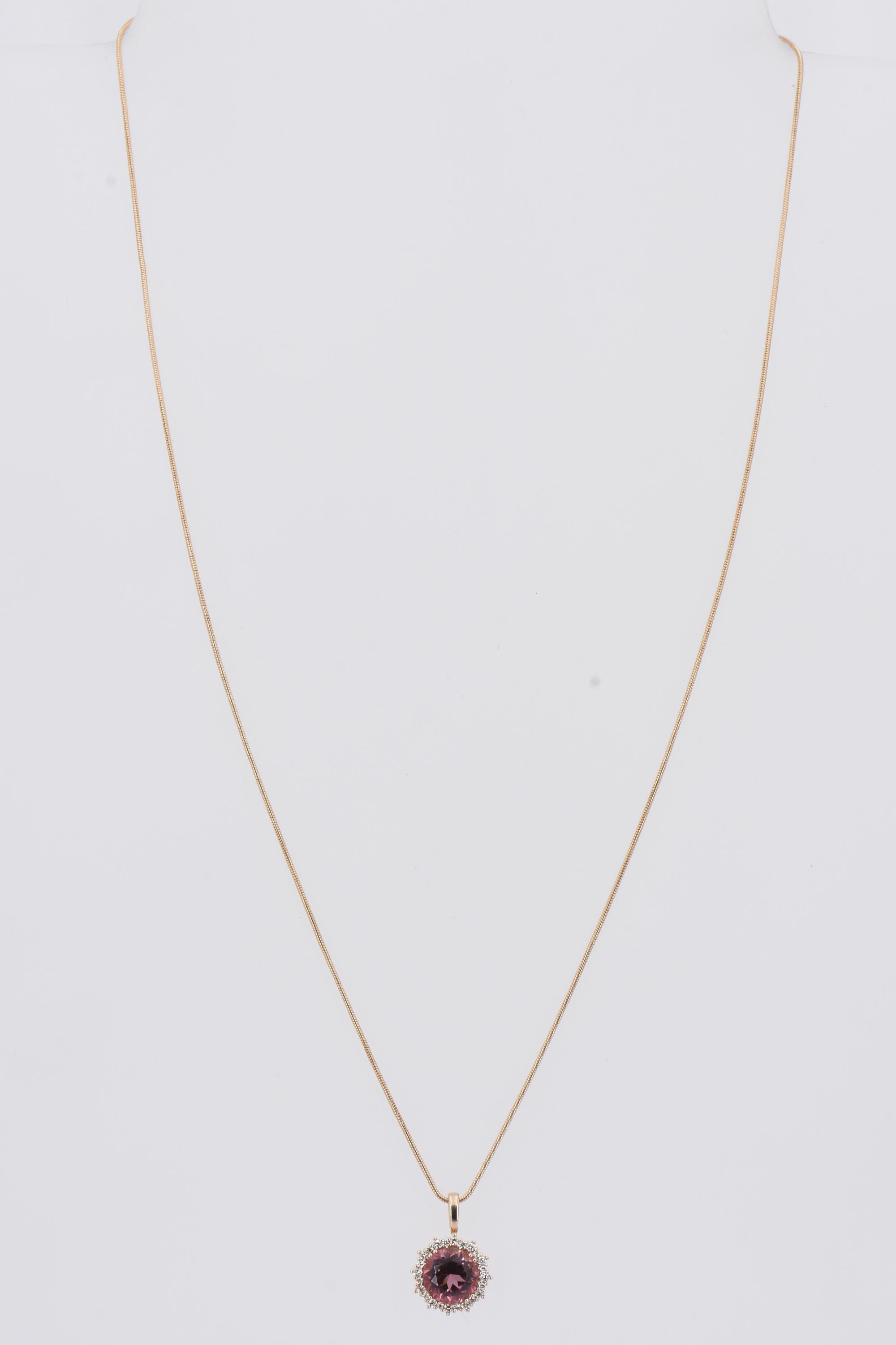 Beschreibung: Karatgewicht von 0,22 gepunzt auf Anhänger. Kette mit Punze "FBM".
