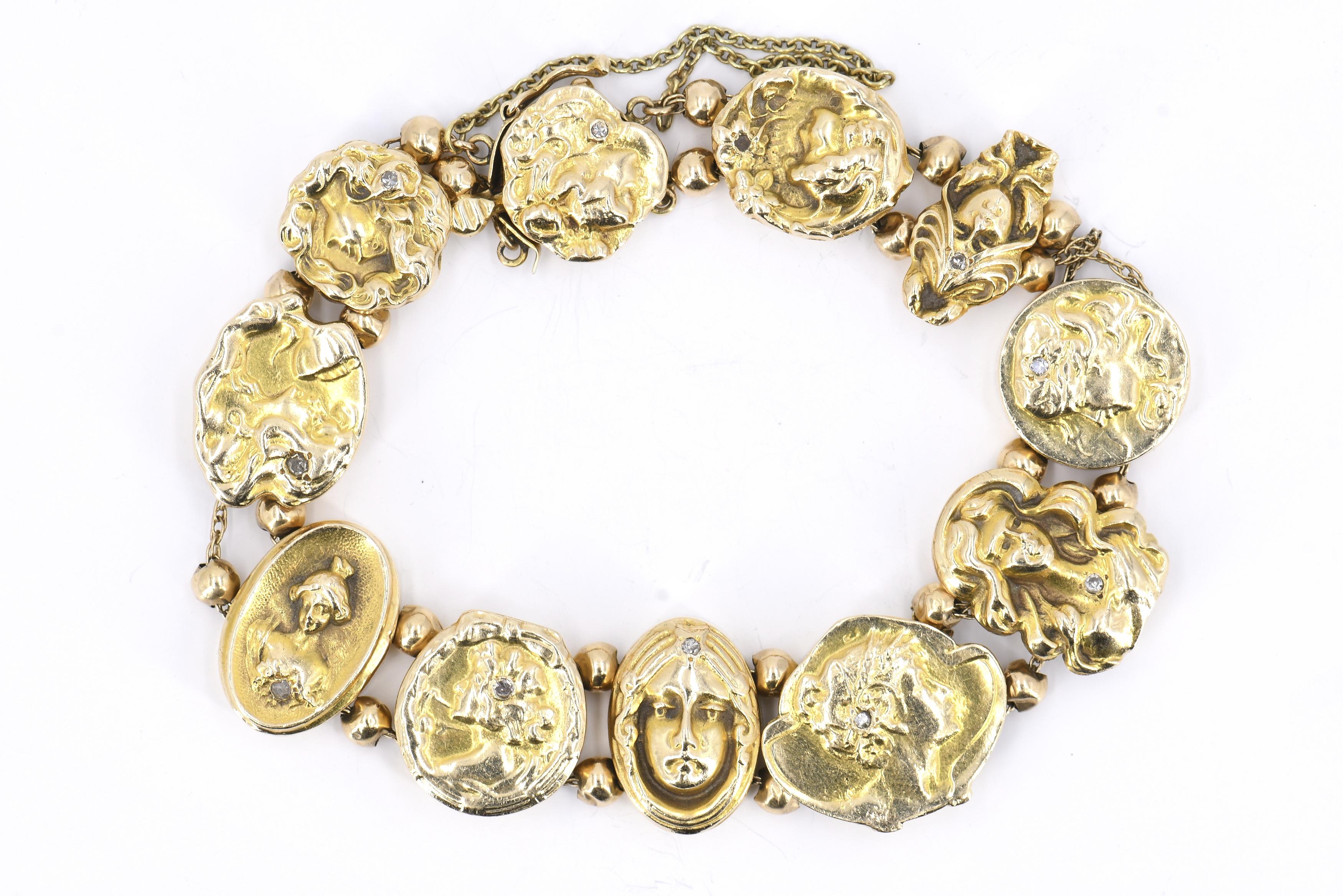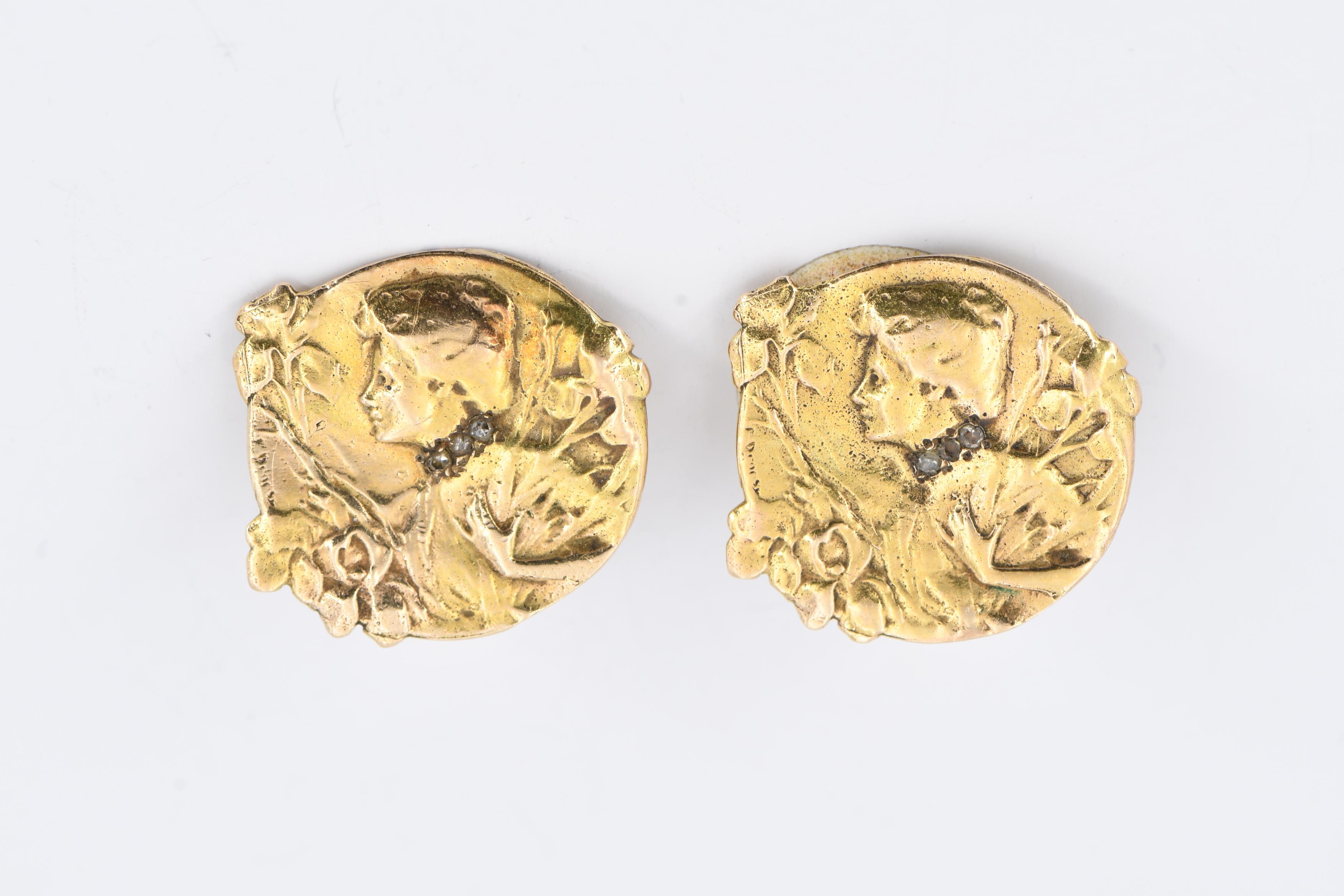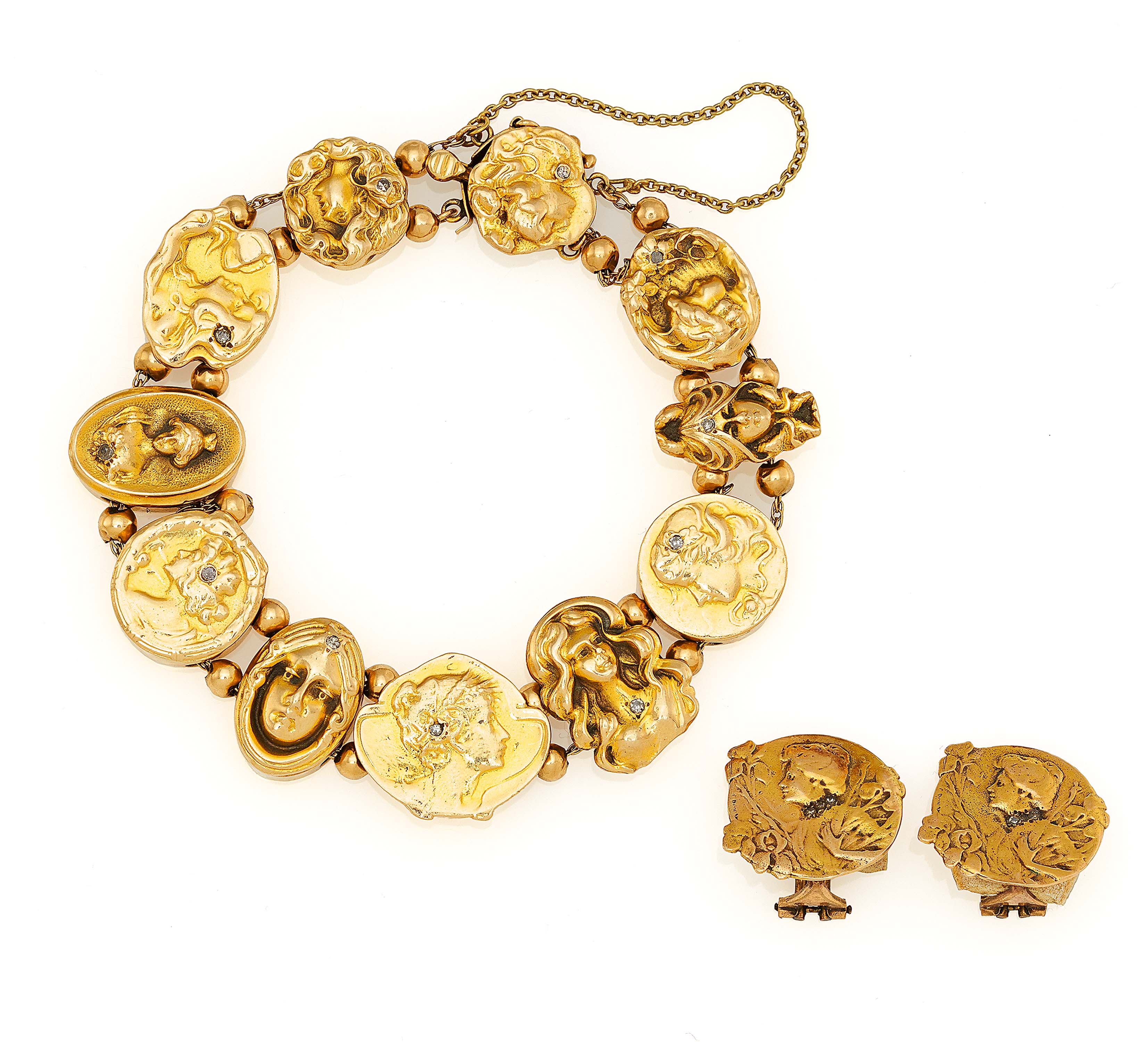 JUGENSTIL-SET: ARMBAND UND OHRCLIPS.