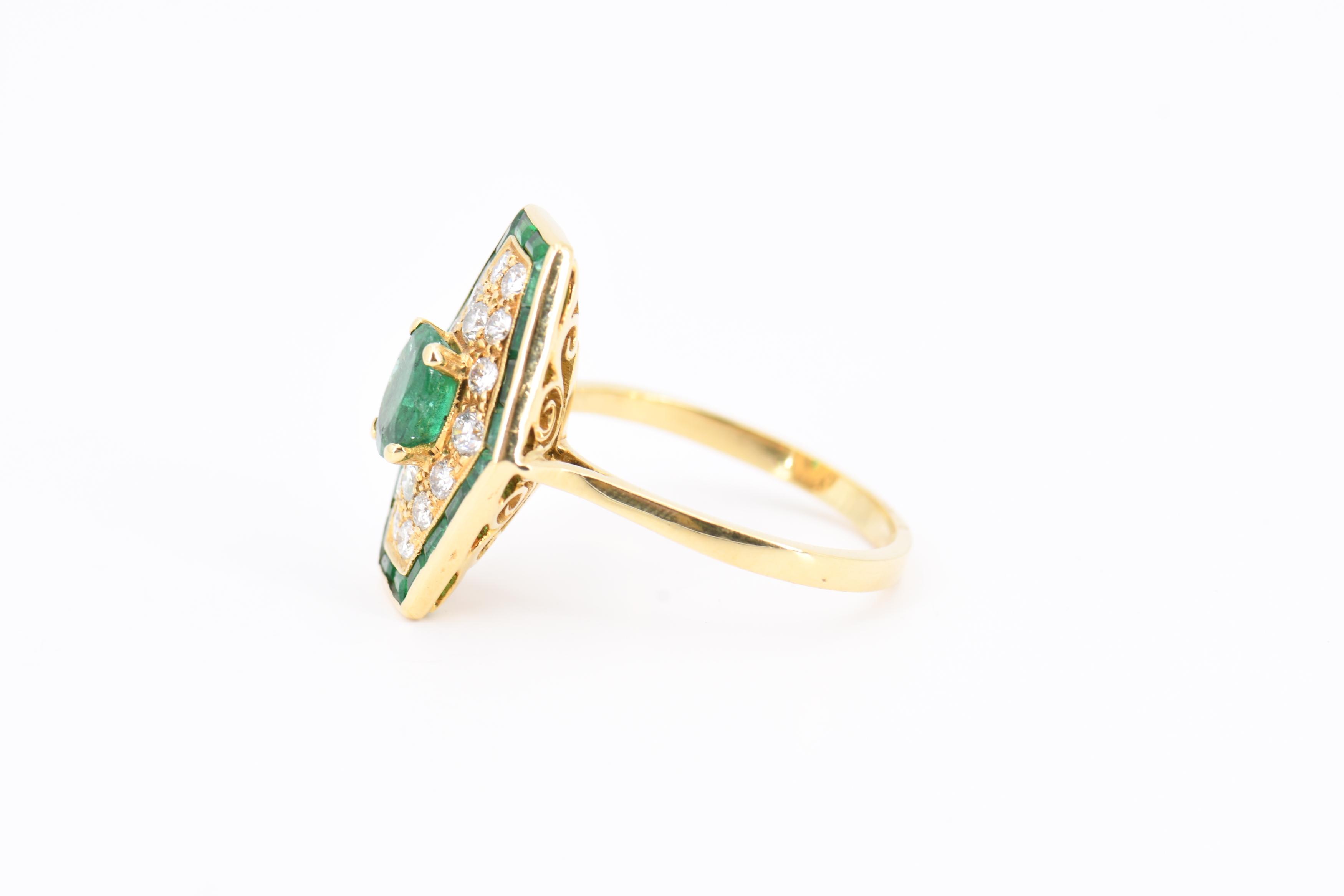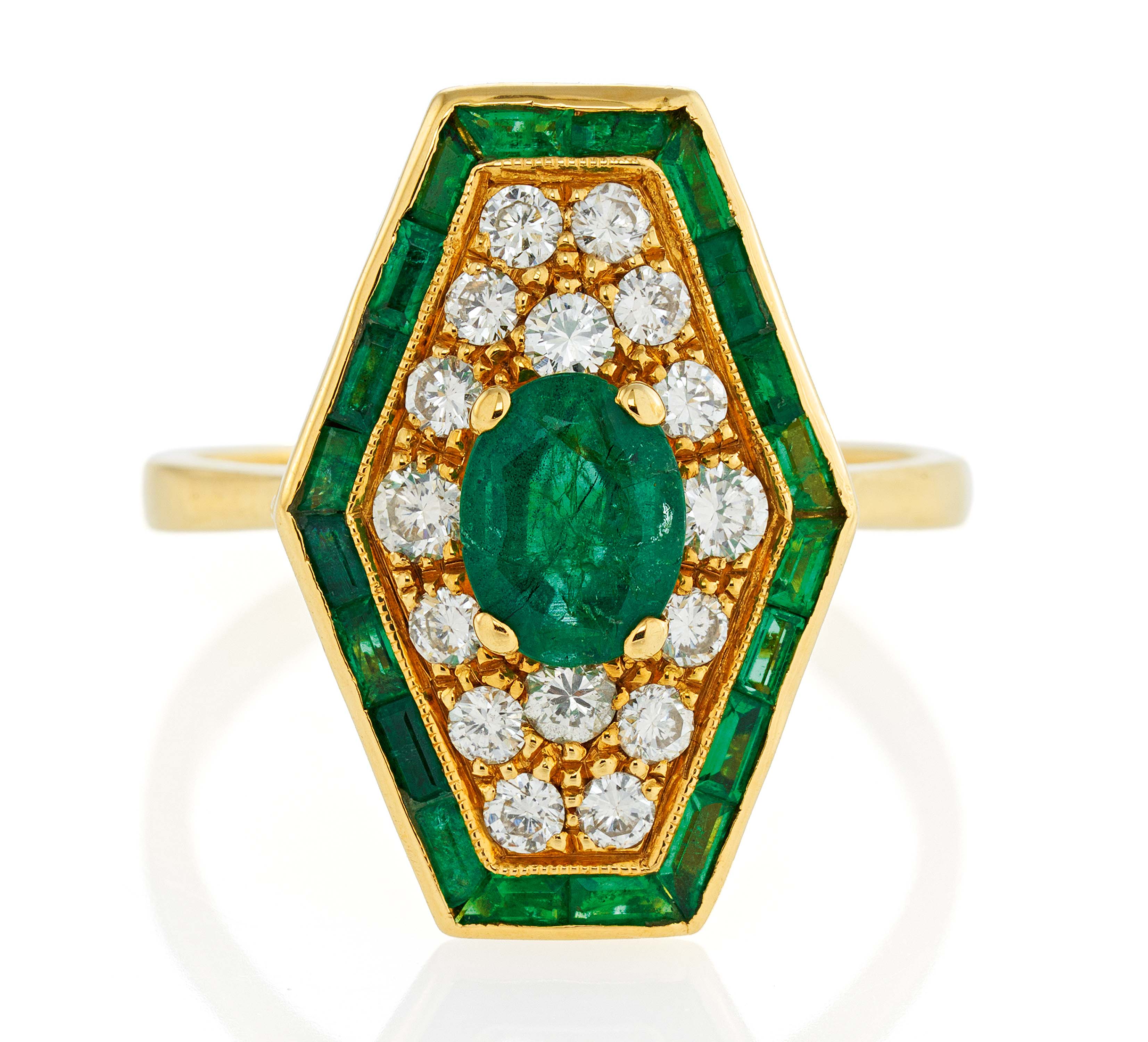 Edelsteine: 20 kleine Smaragde im Baguette- und Trapez-Schliff, 1 ovaler, facettierter Smaragd ca. 0,75 ct.