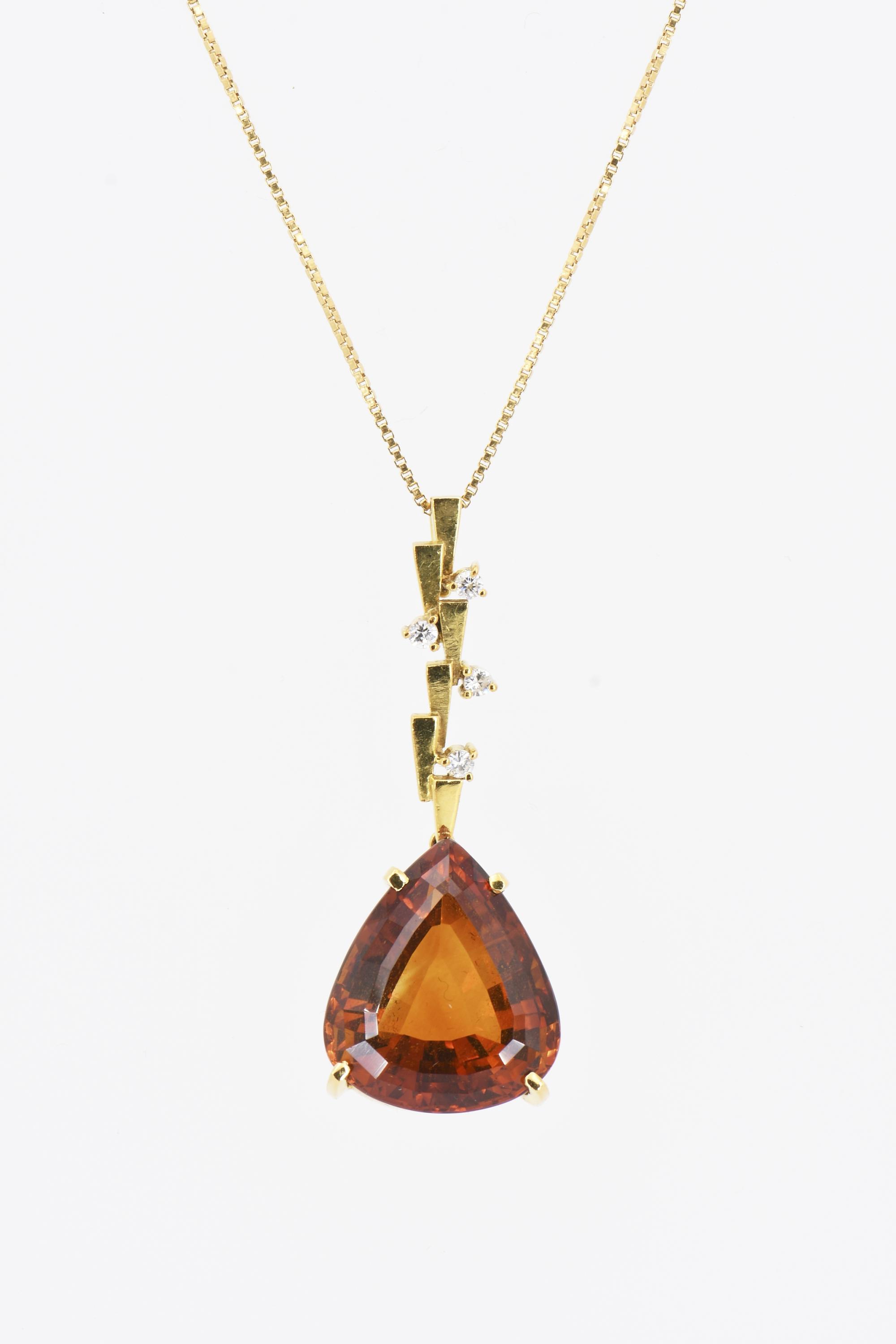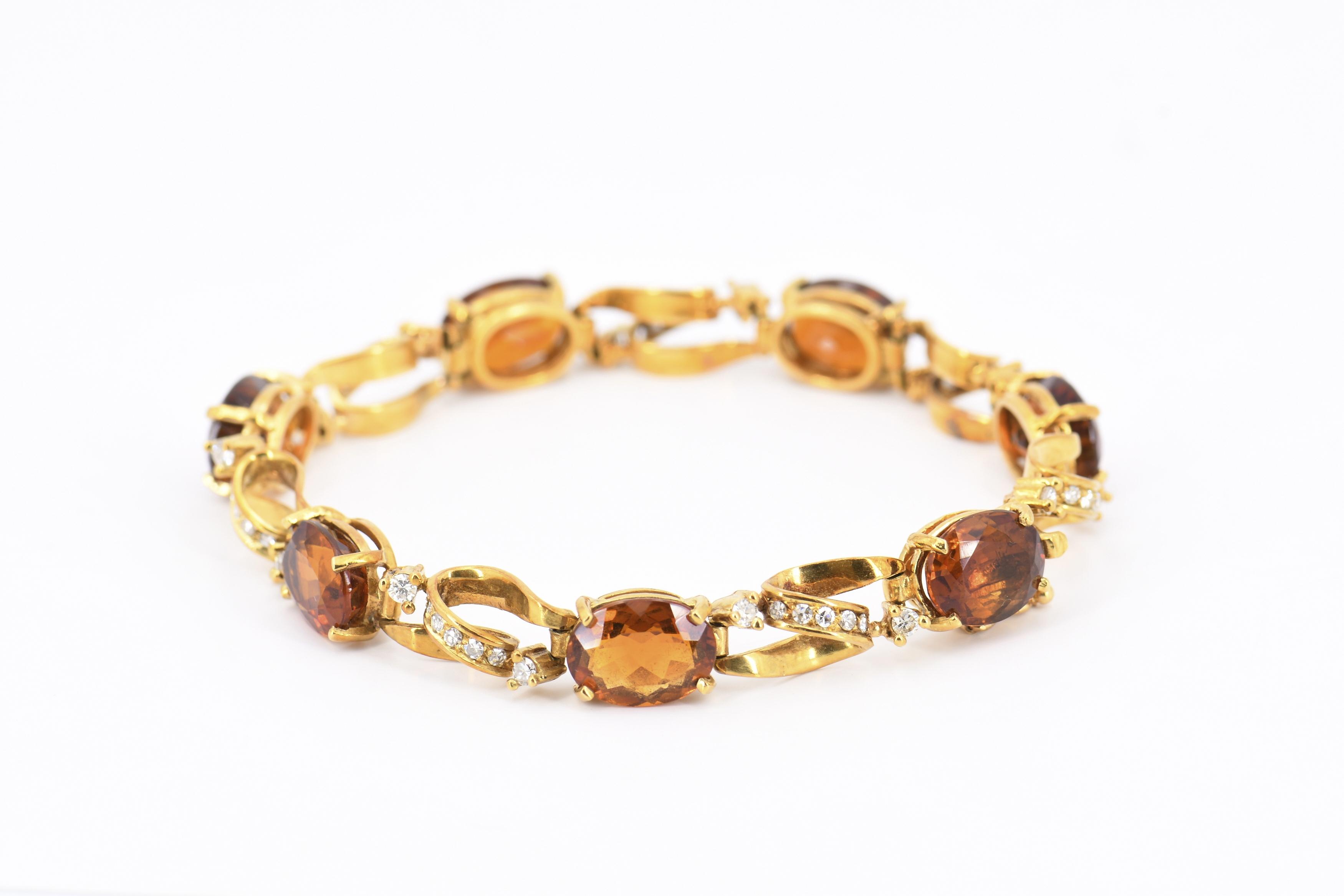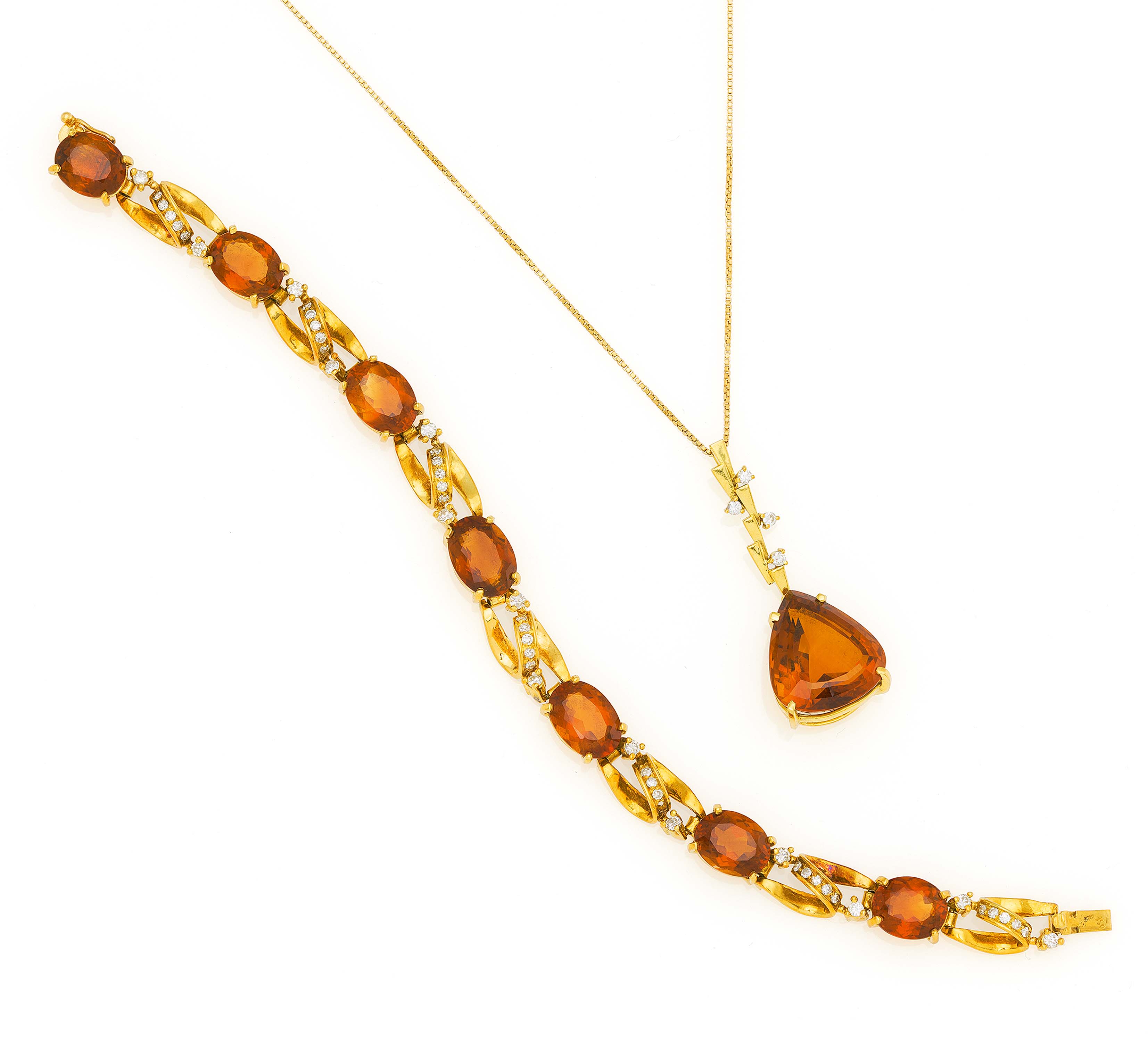 CITRIN-DIAMANT-SET: ARMBAND UND ANHÄNGERKETTE.
