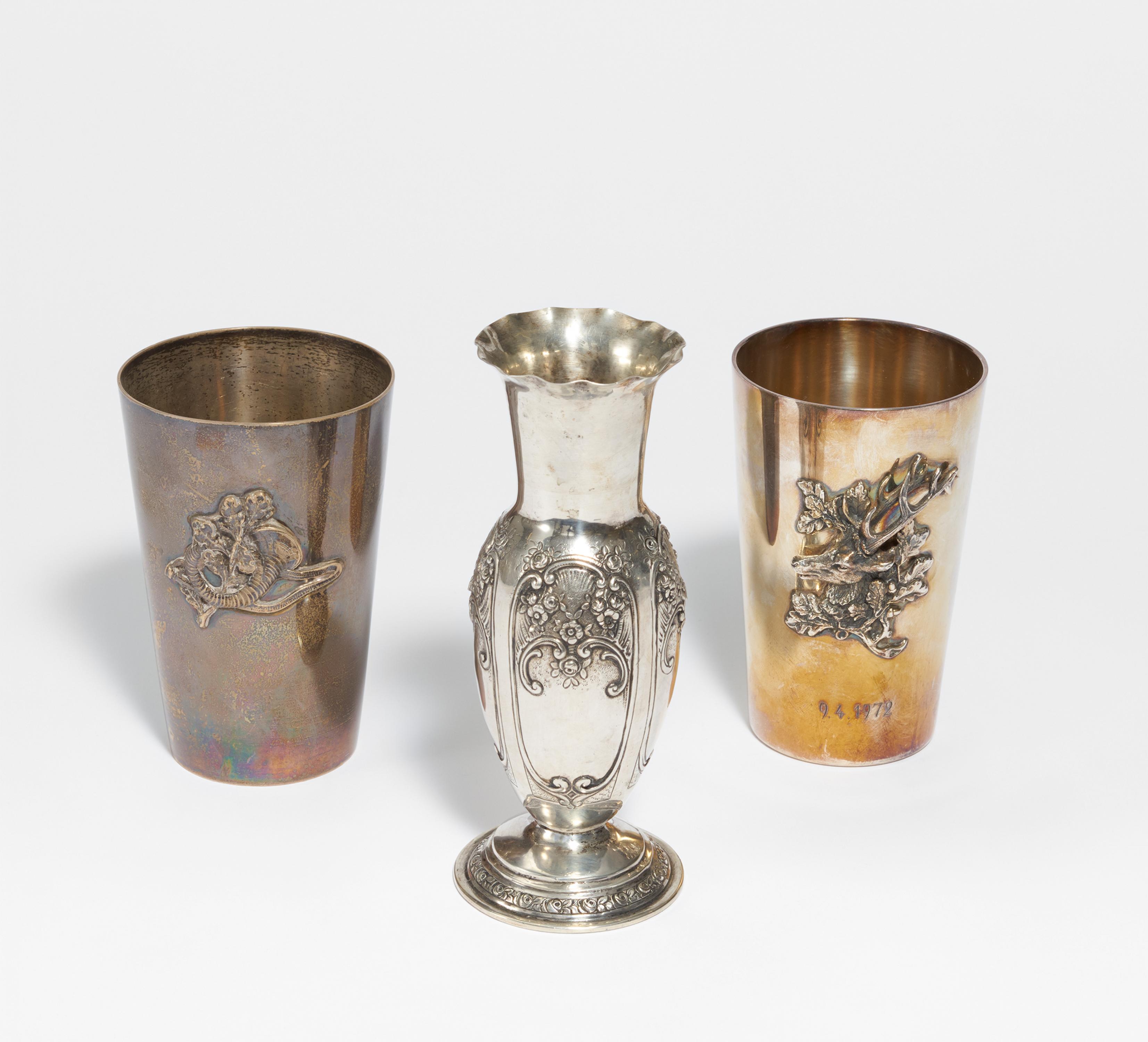 KONVOLUT 2 JAGDBECHER, 1 VASE.