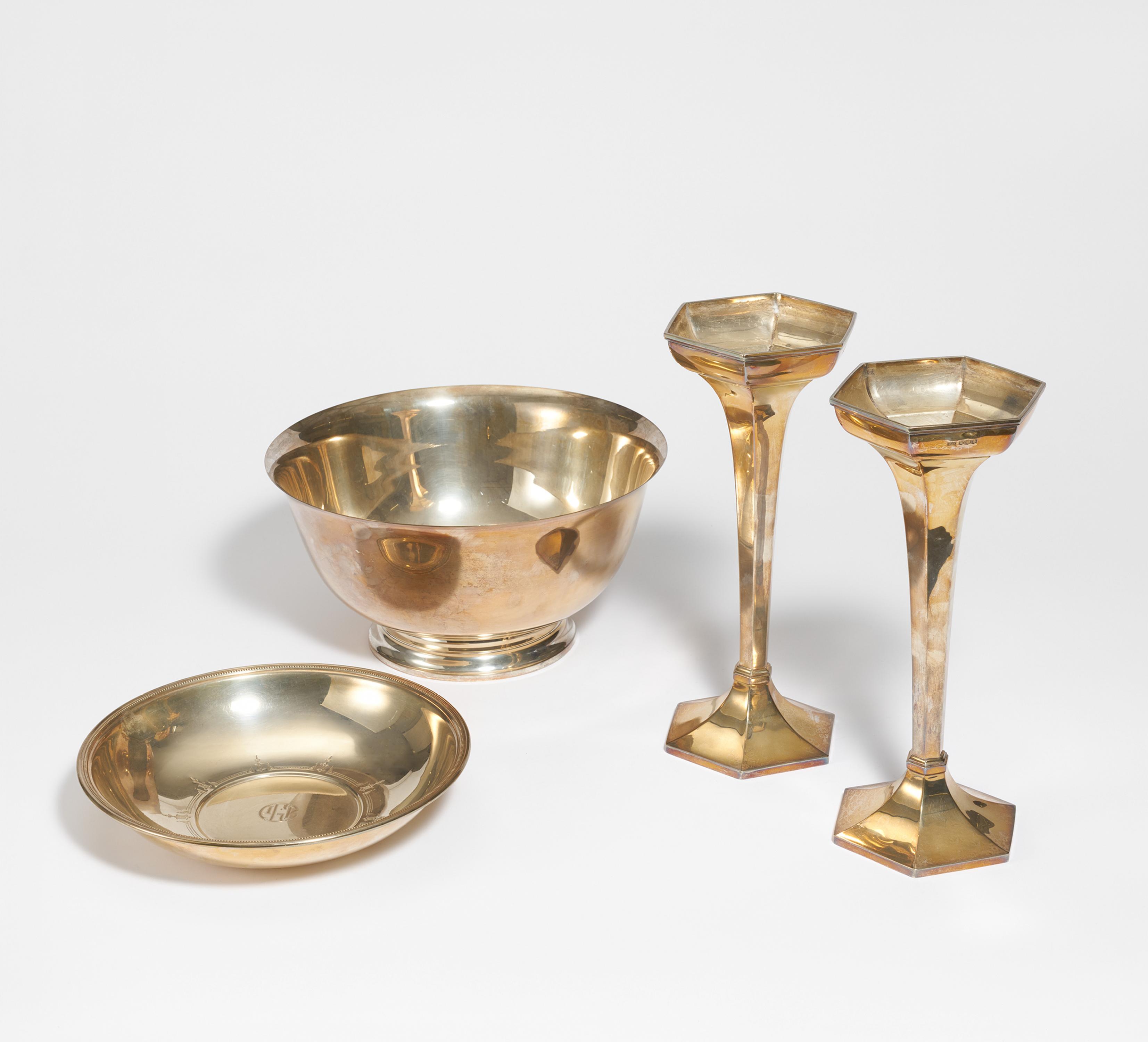 Maße: H. Vasen 30,5cm, ø Schalen 25,5cm/30cm.