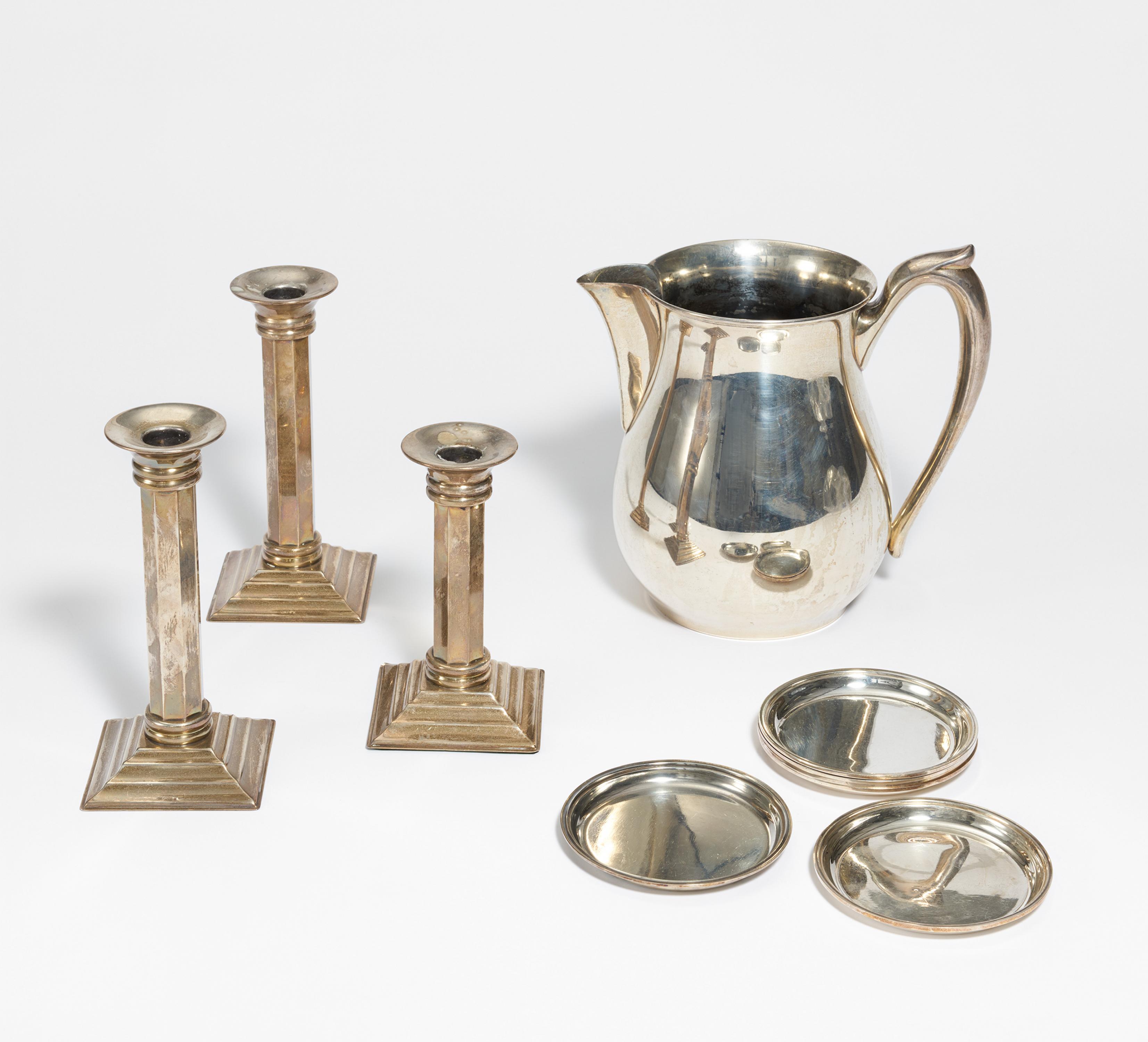 KONVOLUT 6 UNTERSETZER, 3 LEUCHTER.
